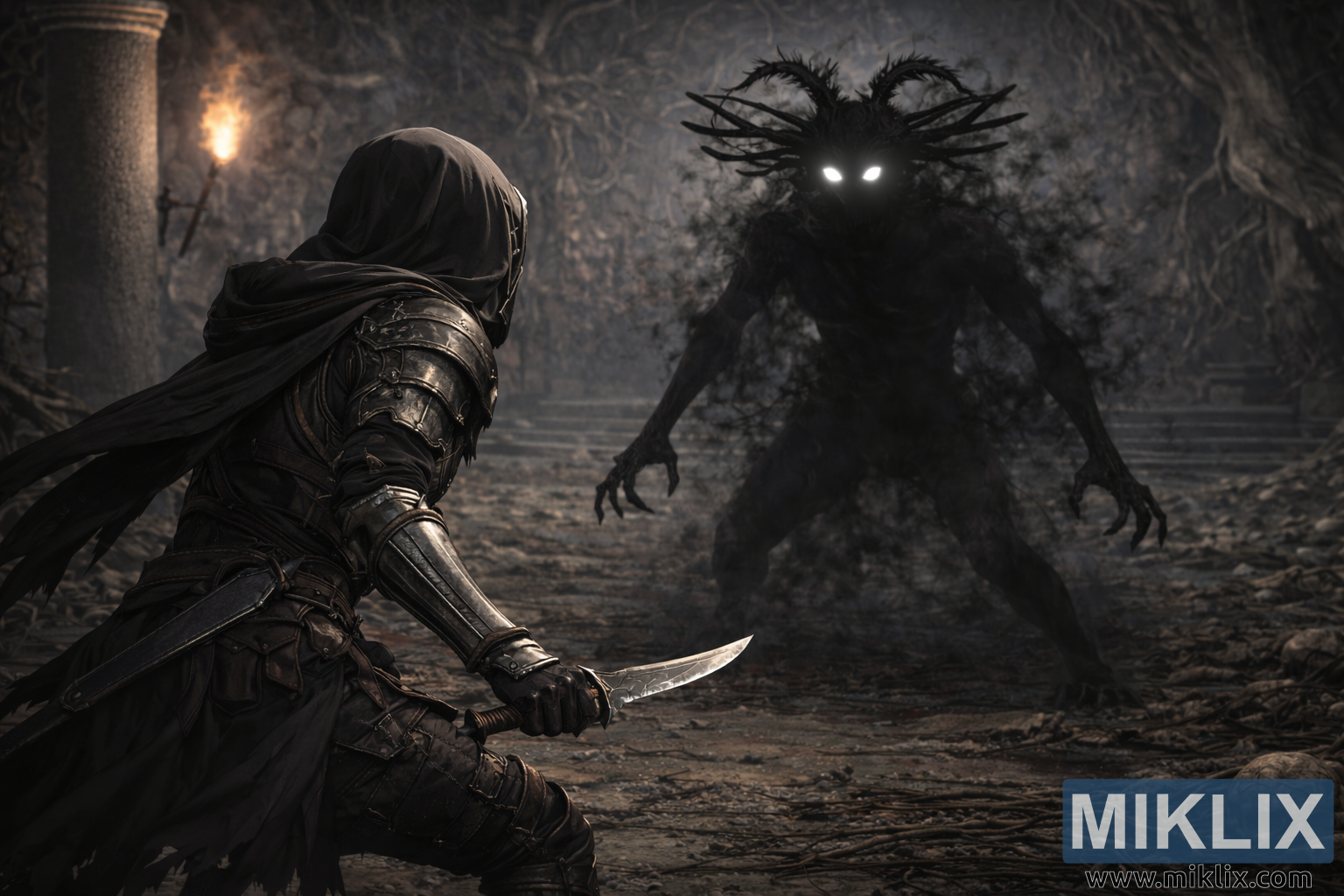 Die beeld hou verband met: Elden Ring: Cemetery Shade (Black Knife Catacombs) Boss Fight