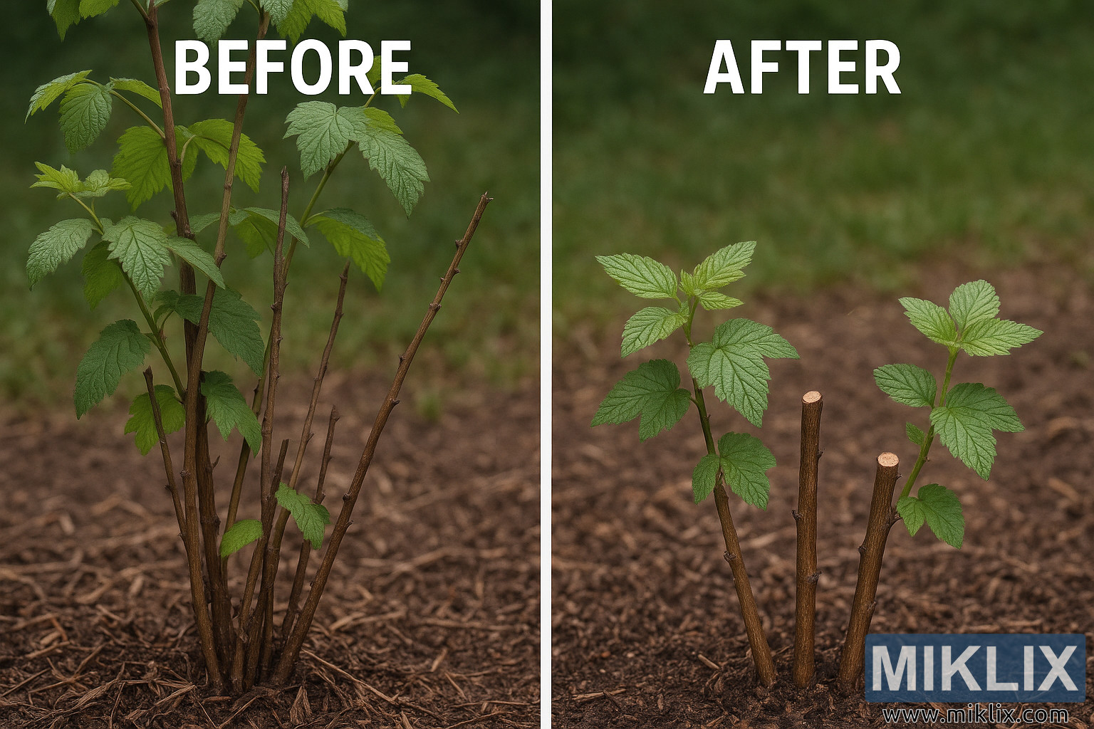 Proper Pruning Technique for Raspberry Canes: Before and After