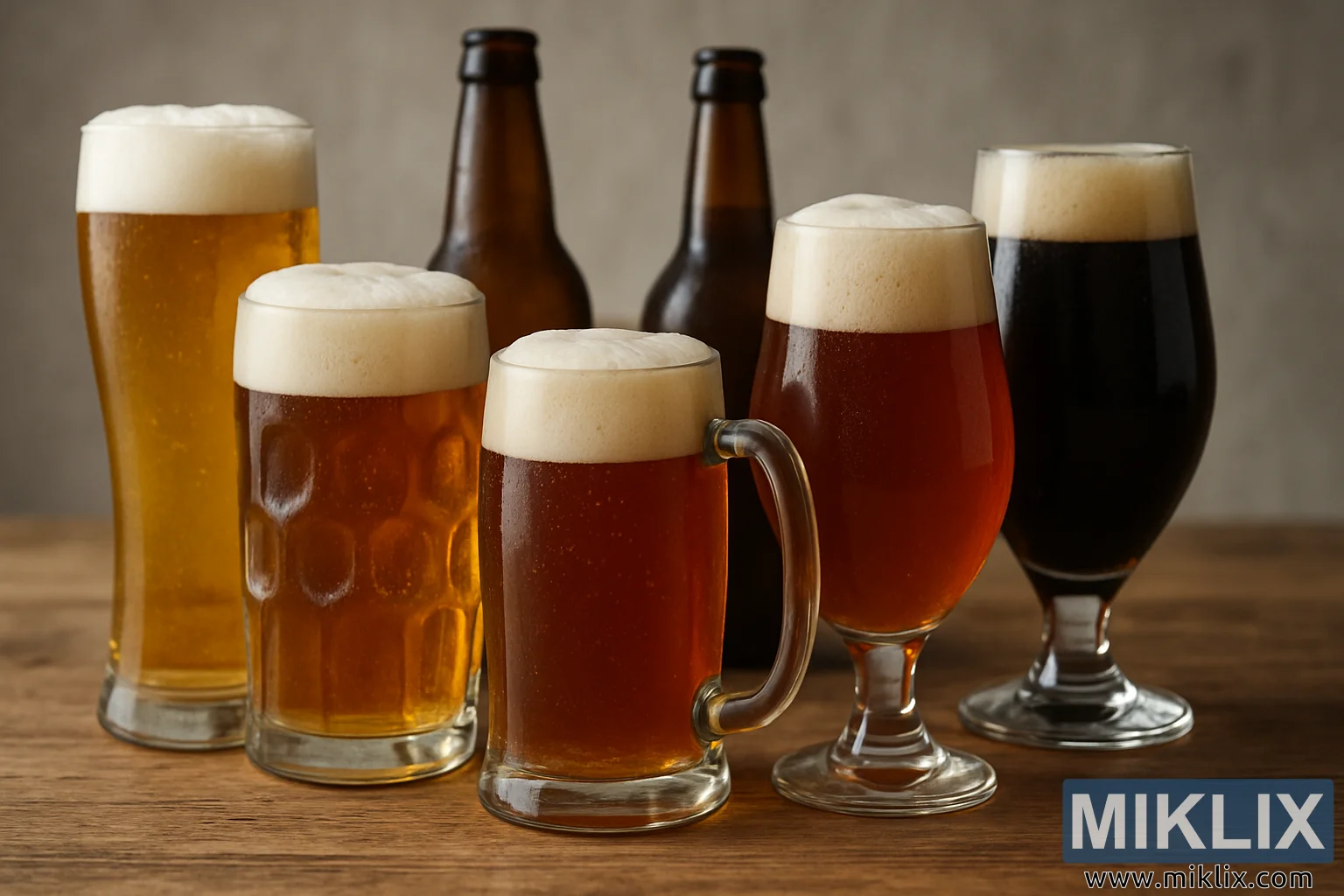 Assorted Beer Styles on Wooden Table