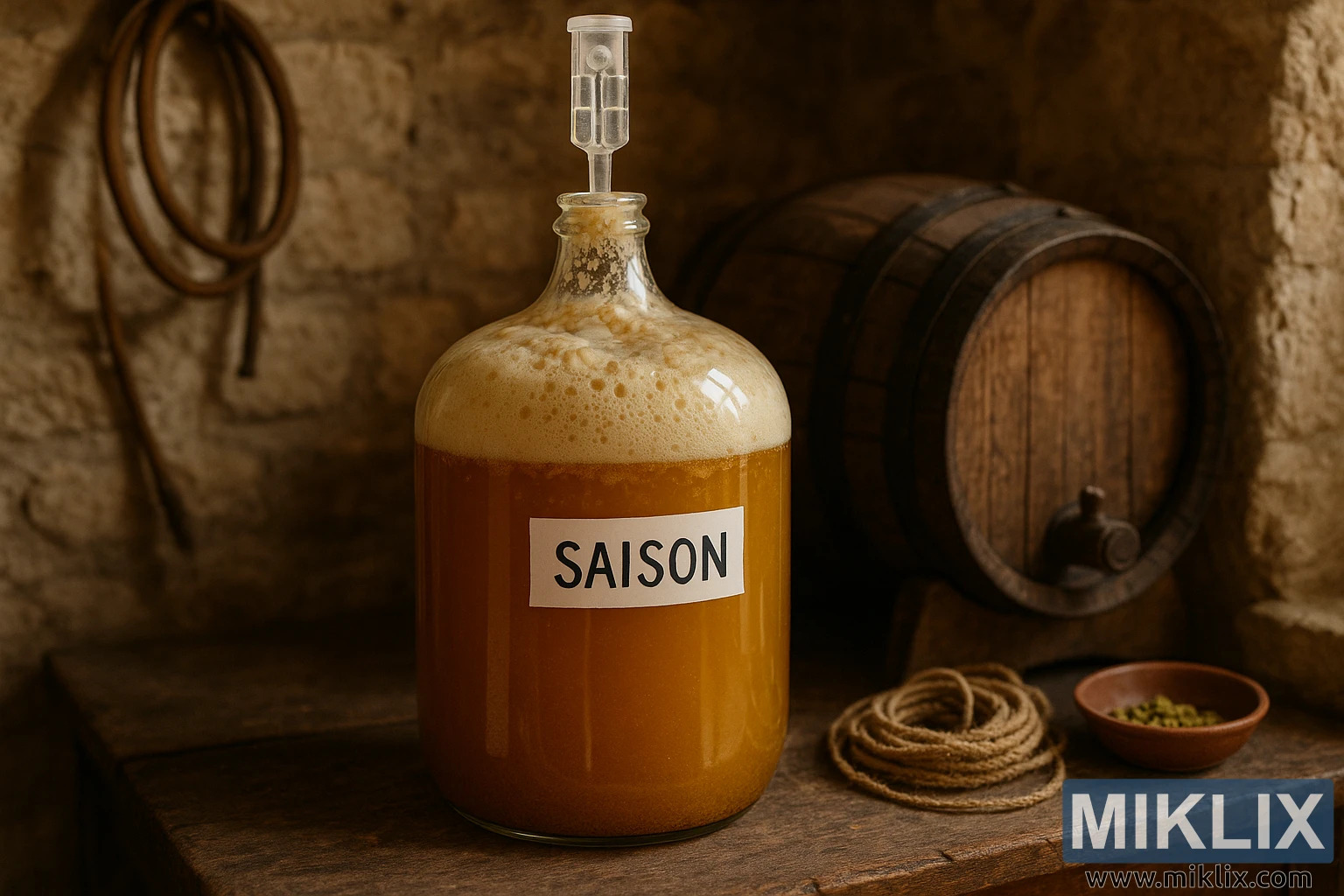 Saison Beer Fermentation in a Rustic French Homebrew Setting