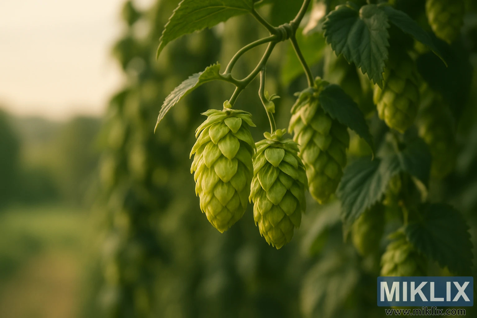 Golden-Hour Close-Up of Southern Cross Hop Cones