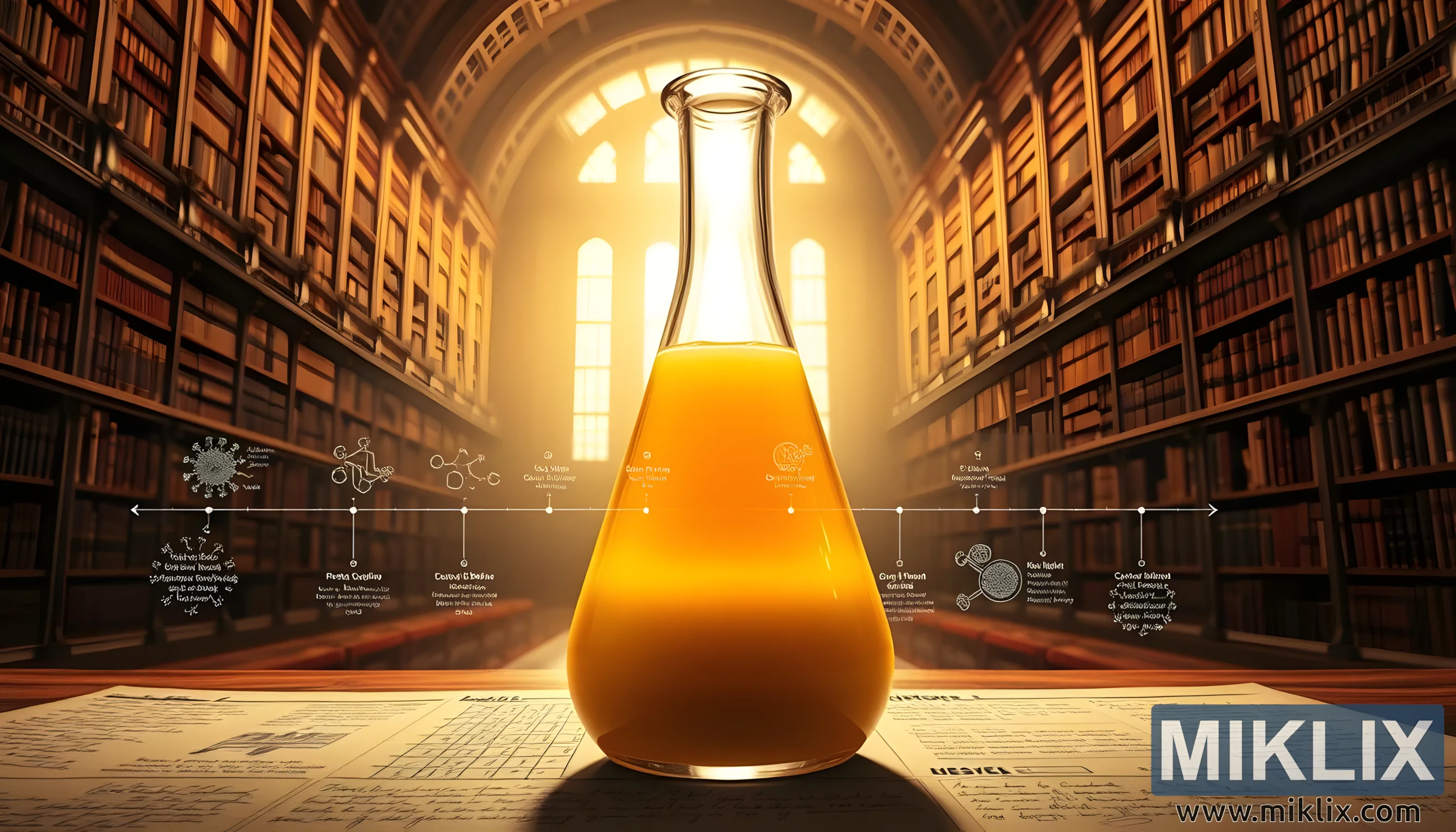 İnsan sağlamlığında və elmi kəşflərdə onun həyati rolunu vurğulayan tədqiqat qrafiki və kitabxana şəraiti ilə parlayan şüşədə kolostrumun təsviri.