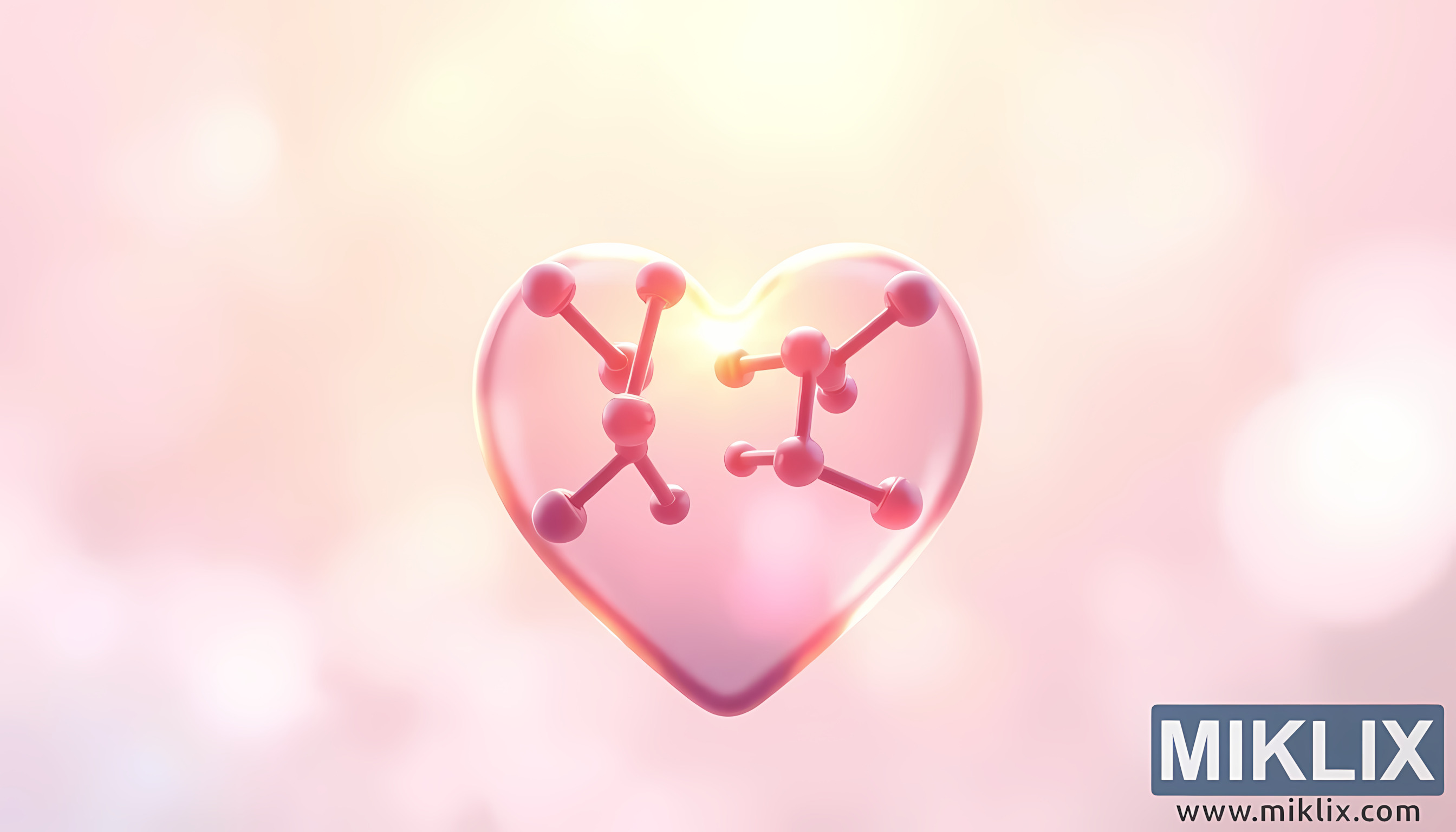 Ürək-damar sağlamlığı və canlılıqdakı mühüm rolunu simvolizə edən, isti enerji ilə parlayan bədii ürək formalı qlisin molekulu.