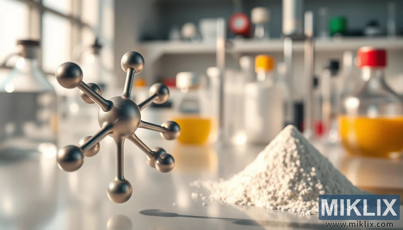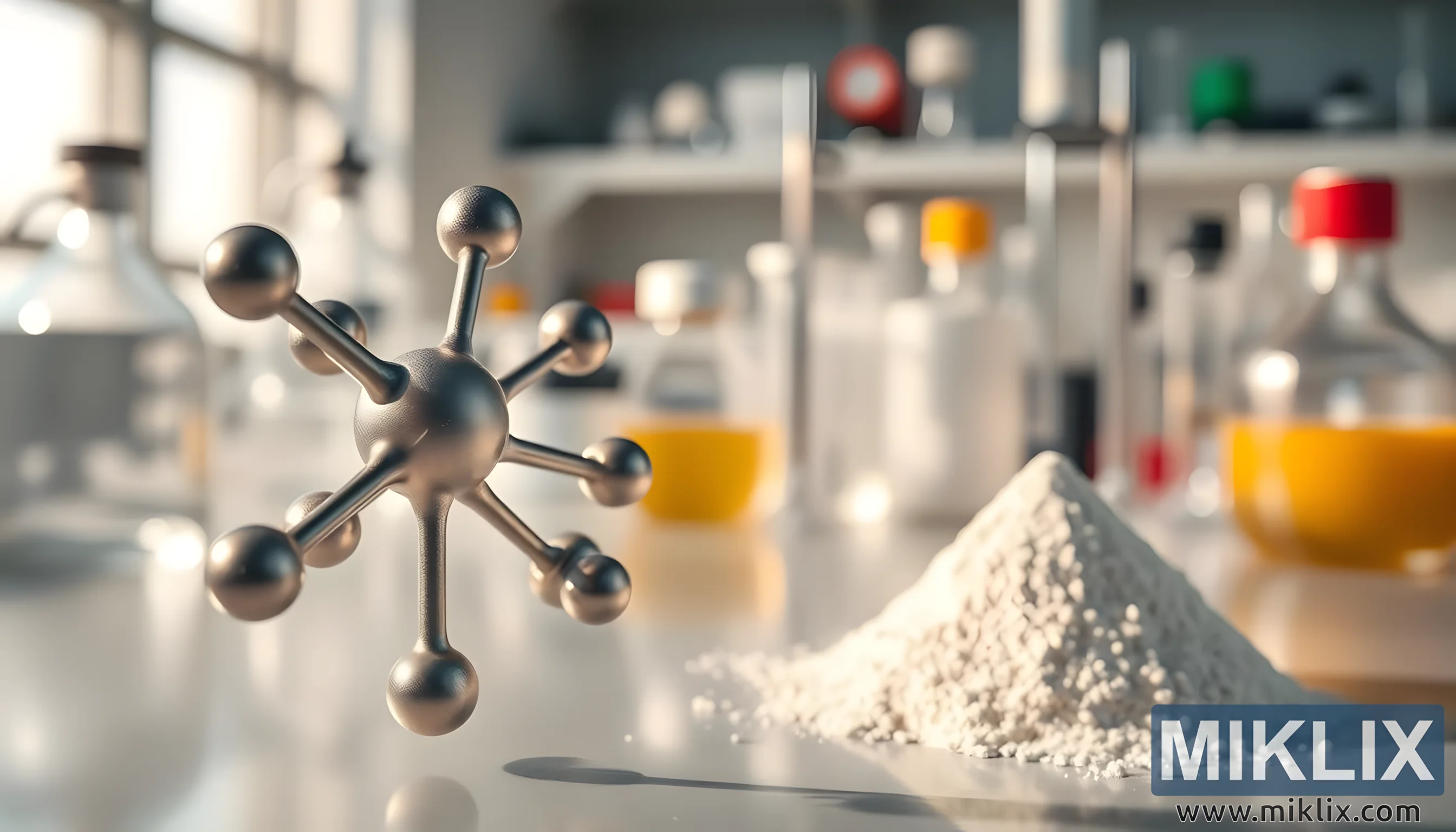 Molekulyar quruluşa əlavə olaraq, incə ağ tozdan ibarət diqqətlə formalaşmış təpə L-Karnitin L-Tartratın xammal formasını təmsil edir. Toz, demək olar ki, hiss olunan bir toxuma ilə təsvir edilmişdir, onun yumşaq kənarları laboratoriya səthindən axan təbii işığı tutur. Bu element mücərrəd molekulyar diaqram və fərdlər tərəfindən istehlak edilən fiziki məhsul arasında nəzərəçarpacaq əlaqə təmin edir, nəzəri elm və praktiki tətbiq arasındakı boşluğu effektiv şəkildə aradan qaldırır. Parlaq molekulyar model ilə toz halında olan əlavənin üzvi qeyri-kamilliyi arasındakı ziddiyyət əlavənin ikililiyini əks etdirir: həm elmi cəhətdən hazırlanmış, həm də gündəlik insan istifadəsinə əsaslanmışdır.