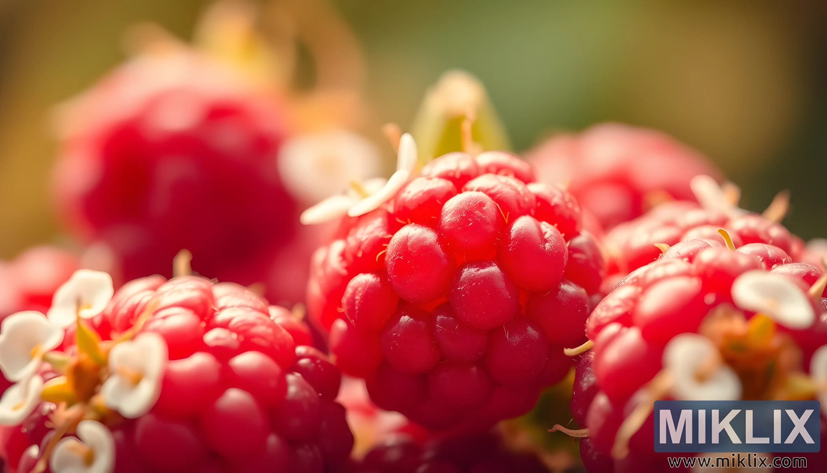 Ripe raspberries with blossoms
