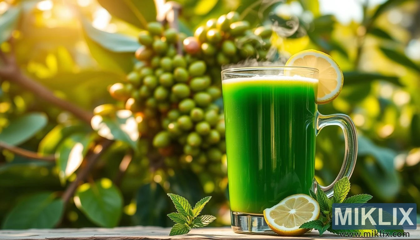 Şəkil: Yaşıl qəhvə bitkisi və içkilər