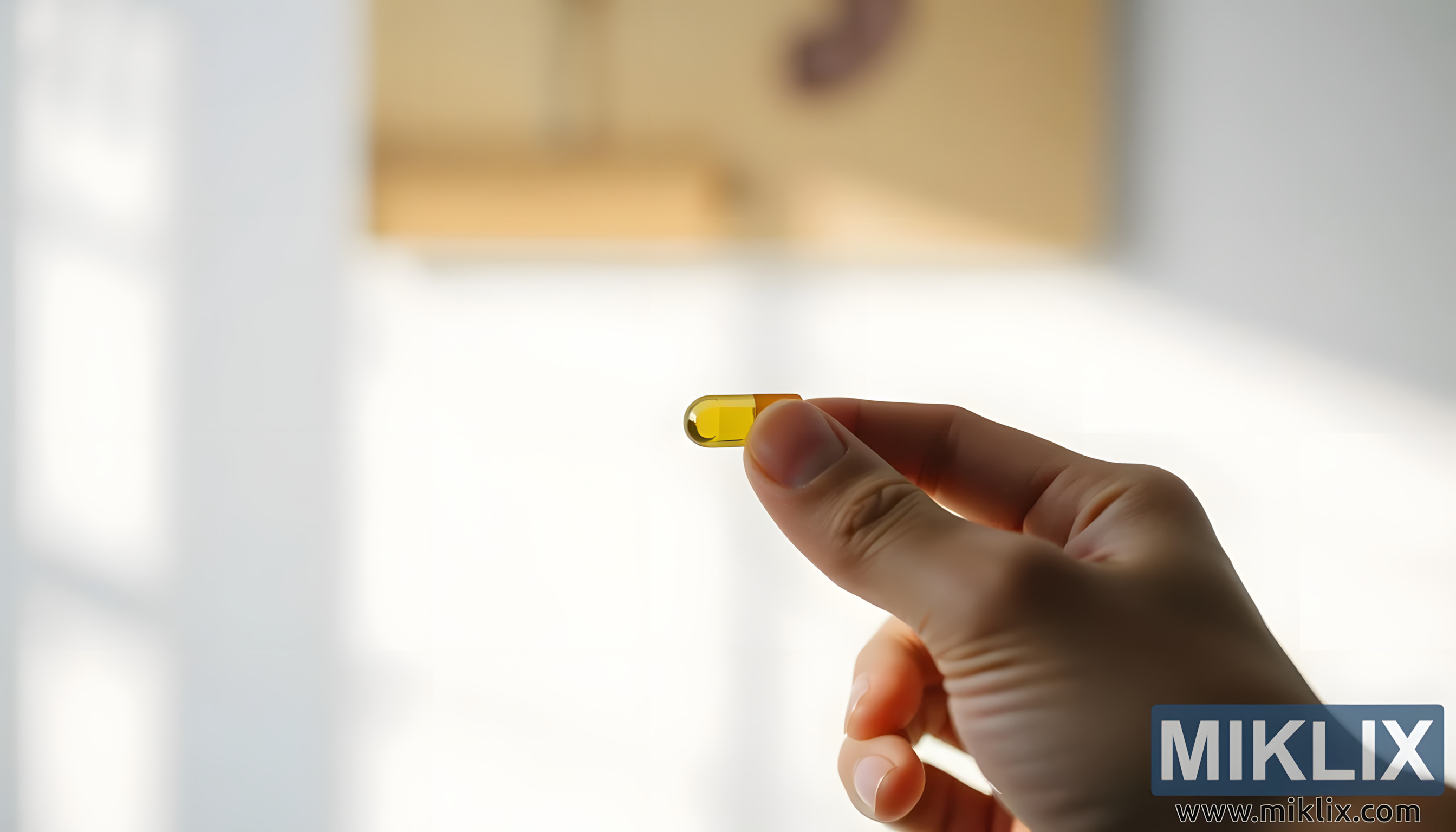 Şəklin əhval-ruhiyyəsi sakit və əks etdirir, sadəlik və aydınlıq mövzularını vurğulayır. Heç bir qarışıqlıq, artıqlıq yoxdur - yalnız bir əl, bir kapsul və günün yumşaq işığı. Bu azaldılmış estetika minimalizm fəlsəfəsini əks etdirir, burada daha az diqqəti yayındıran şeylər həqiqətən vacib olana daha çox diqqət yetirməyə imkan verir. Bu kontekstdə əlavə yalnız sağlamlıq yardımı deyil, həm də ümumi rifahı təmin edən kiçik, lakin mənalı addımları izləyiciyə xatırladan, məqsədyönlü yaşayışın təmsilçiliyinə çevrilir.