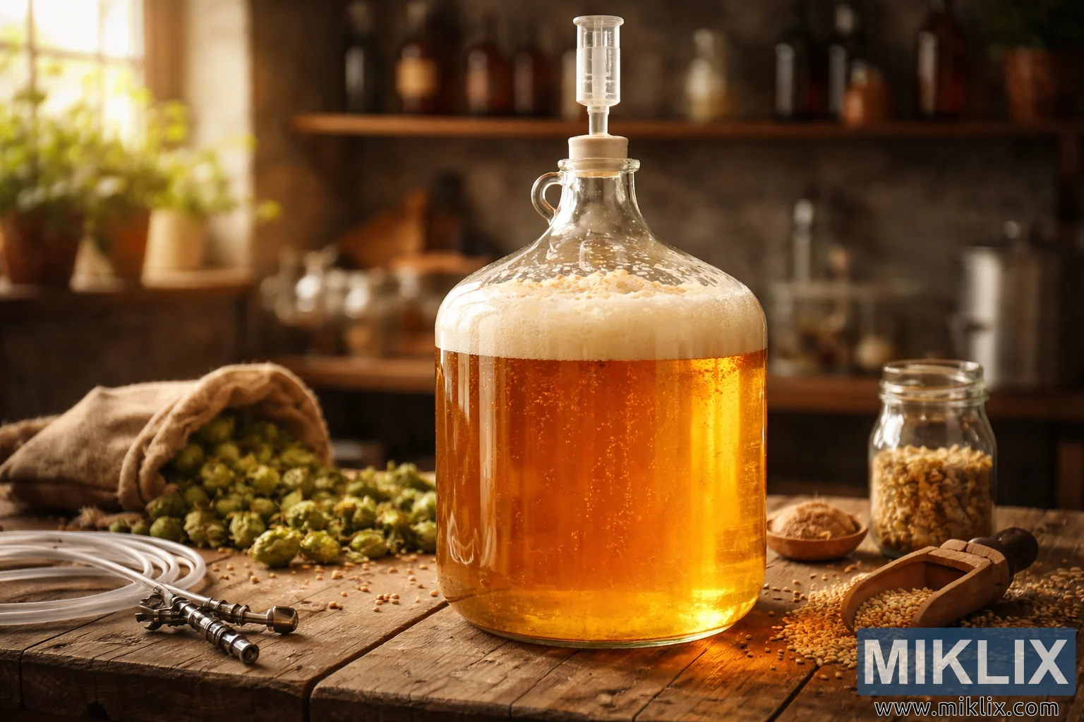 Golden Ale Fermenting in a Rustic Homebrewing Scene