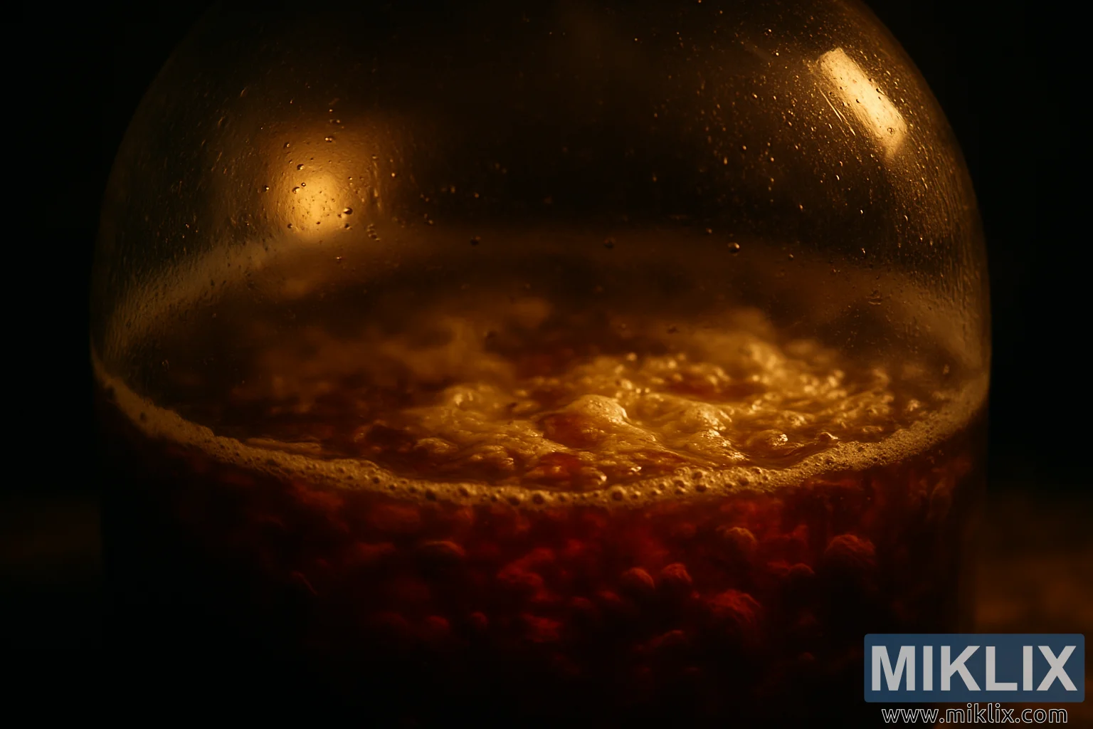 Overall, the image encapsulates a moment of brewing alchemy: the unseen but powerful transformation of raw ingredients into beer. The swirling motion, the glowing light, the clinging condensation, and the dark surrounding stillness together evoke patience, anticipation, and craftsmanship. It conveys the essence of fermentation not as a mechanical stage but as a living, breathing process—slowly coaxing out the nuanced flavors and aromas that will define the final brew.