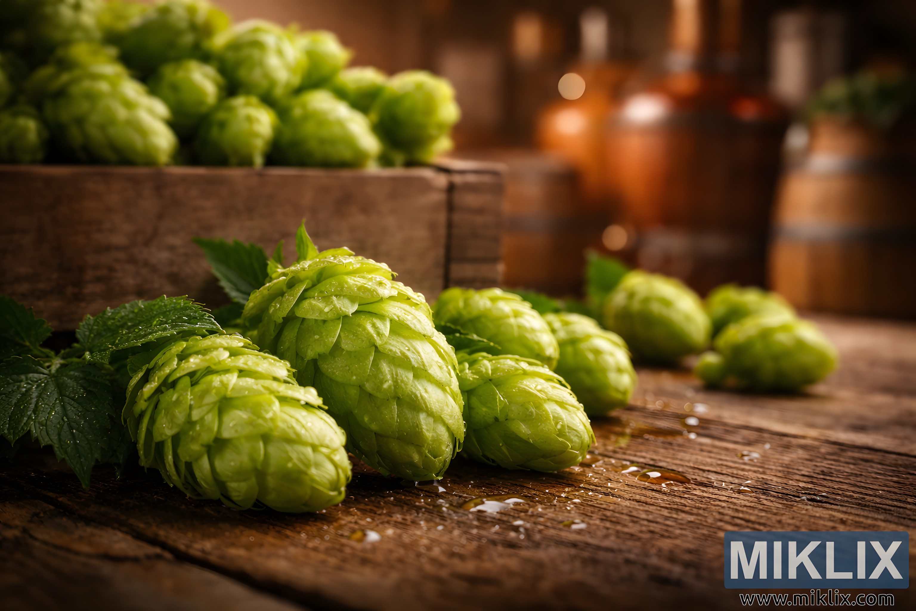 Image: Fresh Cluster Hops in a Rustic Brewery Setting