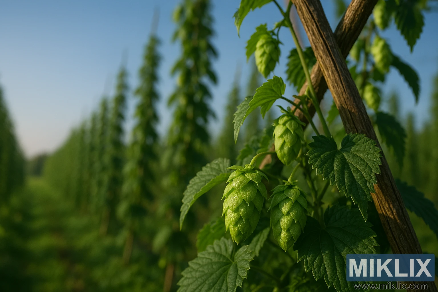 Ideal for educational, promotional, or catalog use, this image blends technical realism with artistic composition, making it a compelling visual tribute to the hop-growing process.