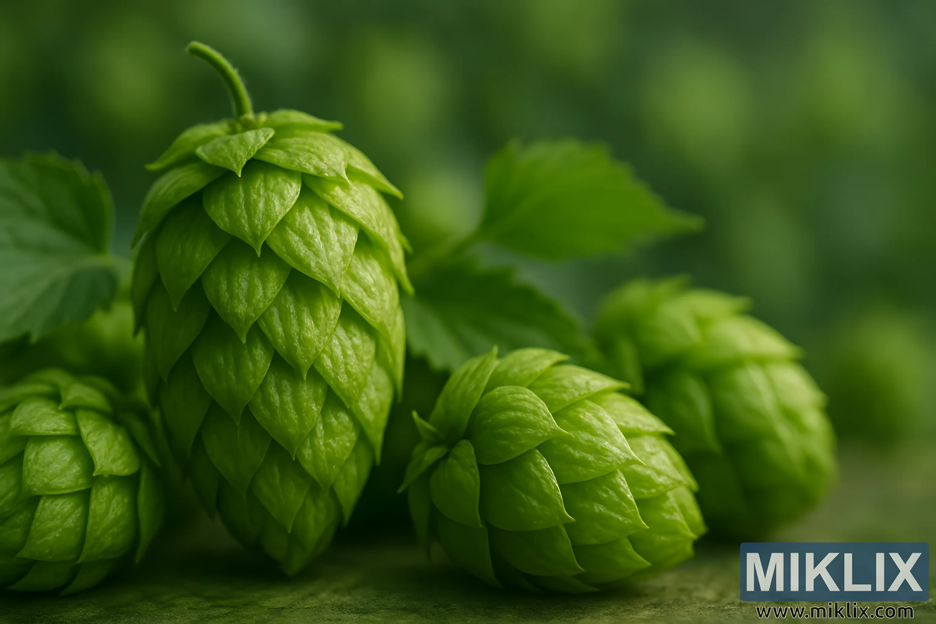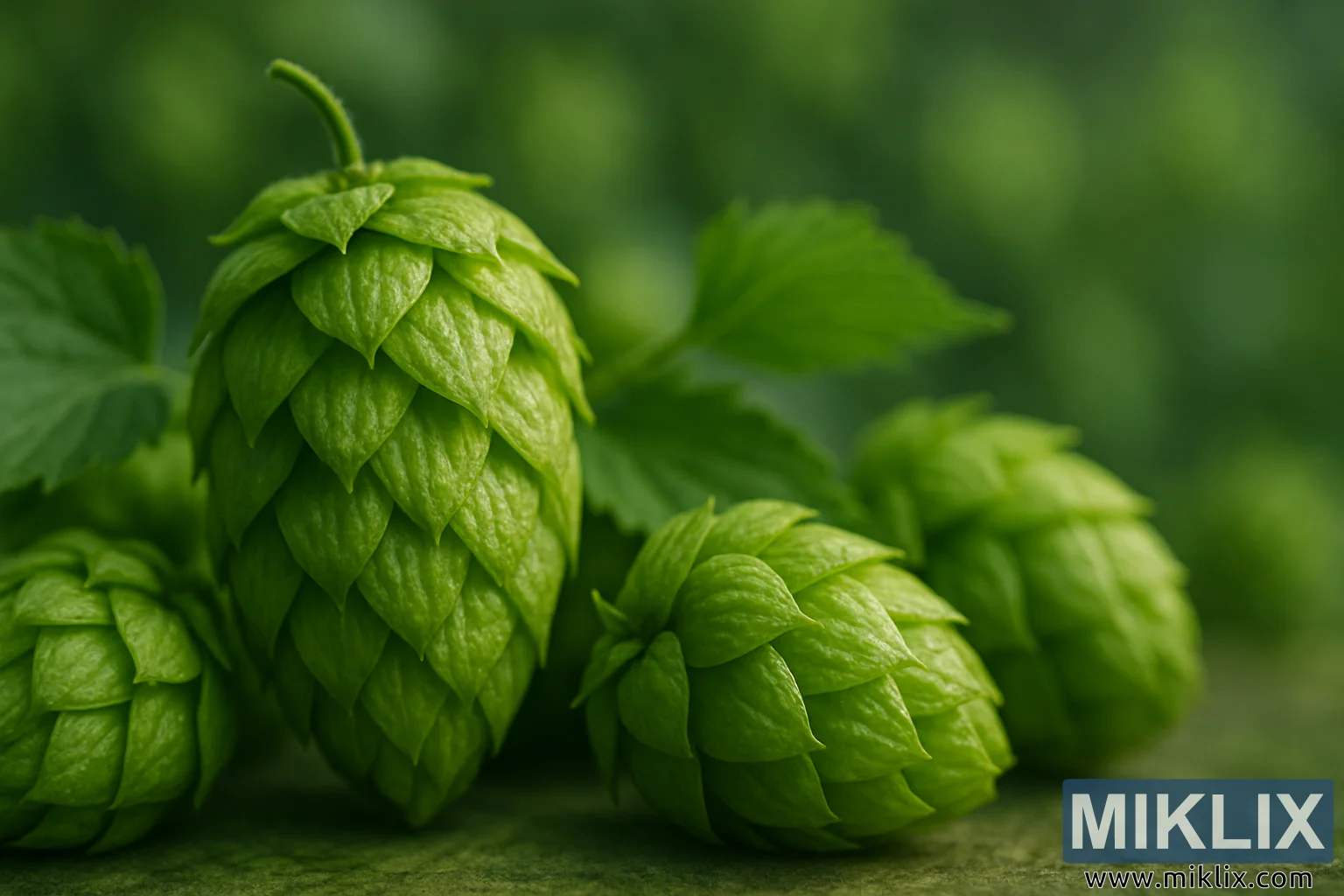 The mood is one of both immediacy and imagination. On one level, the cones are presented in their raw, physical state—freshly harvested, glistening, brimming with oils and resins. Yet they also invite the viewer to project forward, to imagine the transformation that awaits them. Crushing one between the fingers might release a burst of floral perfume mingled with citrus brightness, earthy grounding notes, or a subtle trace of spice. Dropped into boiling wort, their lupulin would dissolve, imparting bitterness to balance sweetness, complexity to elevate simplicity, and aroma that lingers on the senses long after the glass is empty.