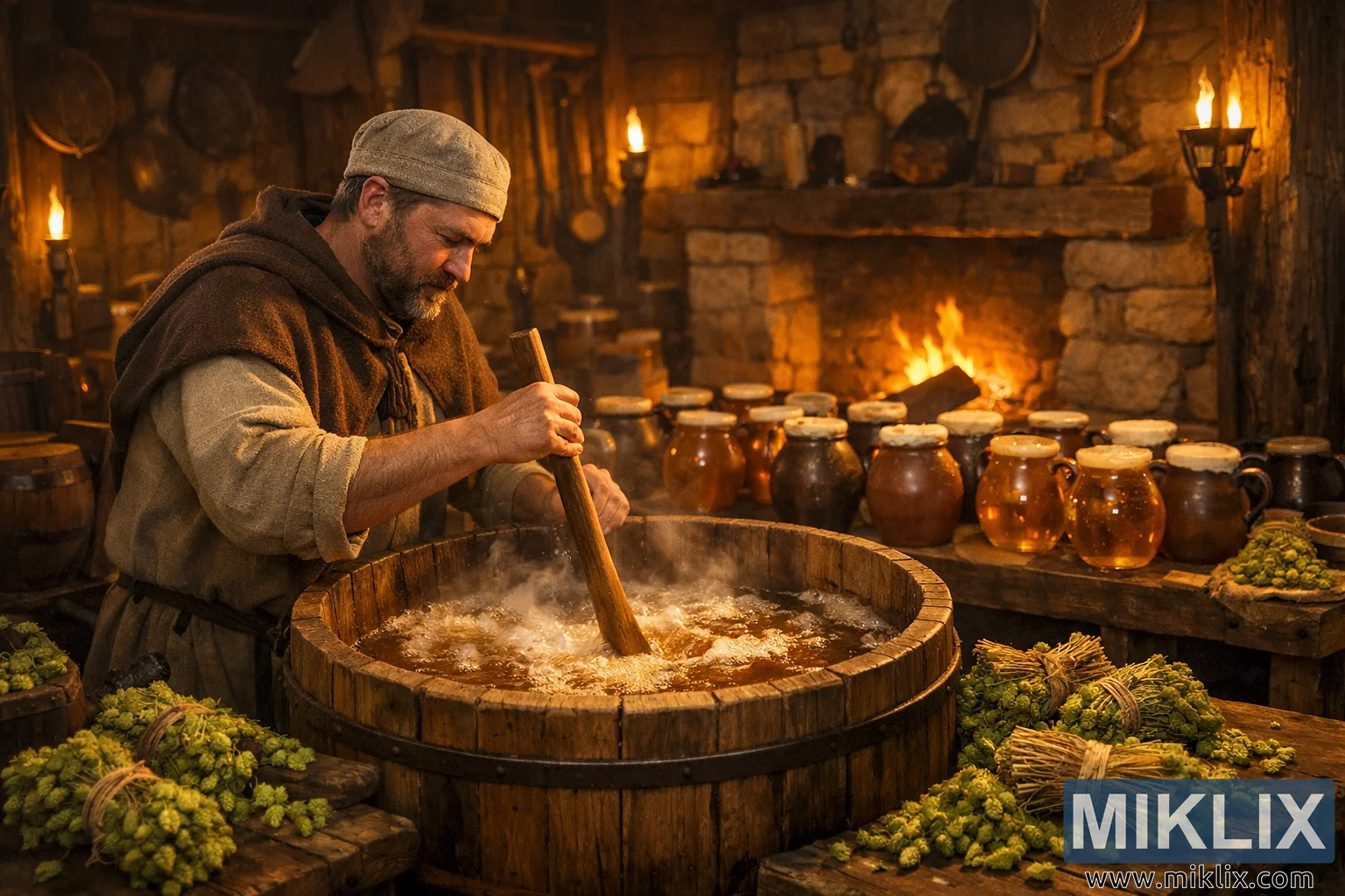Image: Serene Anglo-Saxon Brewer at Work in a Mead Hall