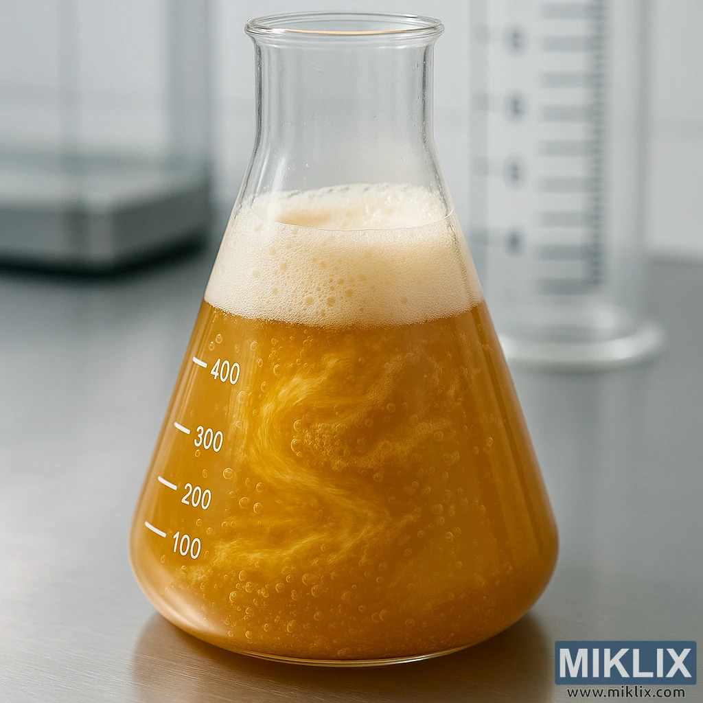 Image: Fermenting Beer Wort with Yeast in Laboratory Flask