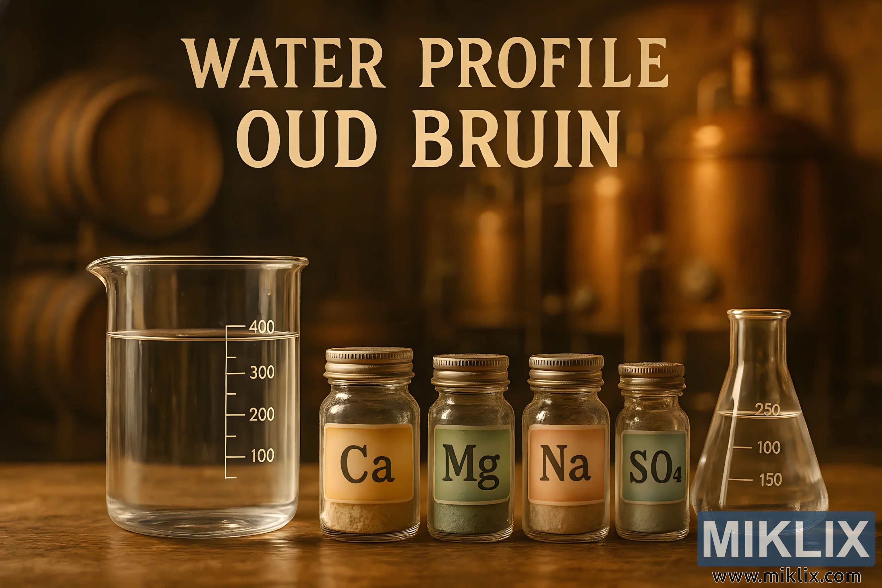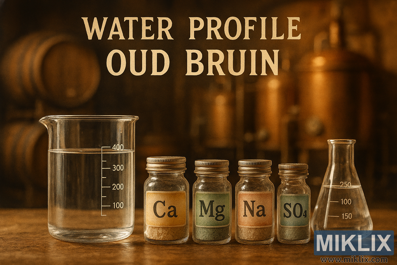 This high-resolution landscape image presents a richly detailed and artistic representation of a water profile tailored for Oud Bruin beer, emphasizing the chemistry and craftsmanship behind traditional brewing.