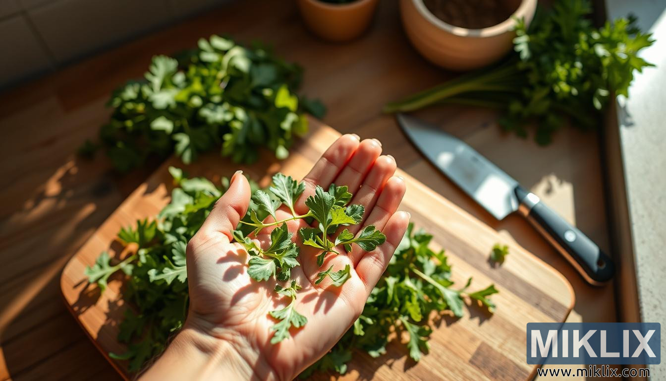 En definitiva, l'escena encapsula l'essència de la simplicitat i l'autenticitat. La interacció de la llum natural, les textures orgàniques i els verds frescos explica una història de salut, cura i la relació íntima entre les persones i el seu menjar. Suggereix que dins de l'humil acte de preparar un àpat hi ha una oportunitat per alentir el ritme, connectar amb el present i celebrar la bellesa dels ingredients mateixos. En centrar-se tant en la ruca —les seves venes, les seves corbes, els seus tons vibrants—, la imatge subratlla com fins i tot els detalls més petits de la natura poden inspirar reverència i meravella, transformant un taulell de cuina ordinari en un lloc de nutrició, consciència plena i creativitat.