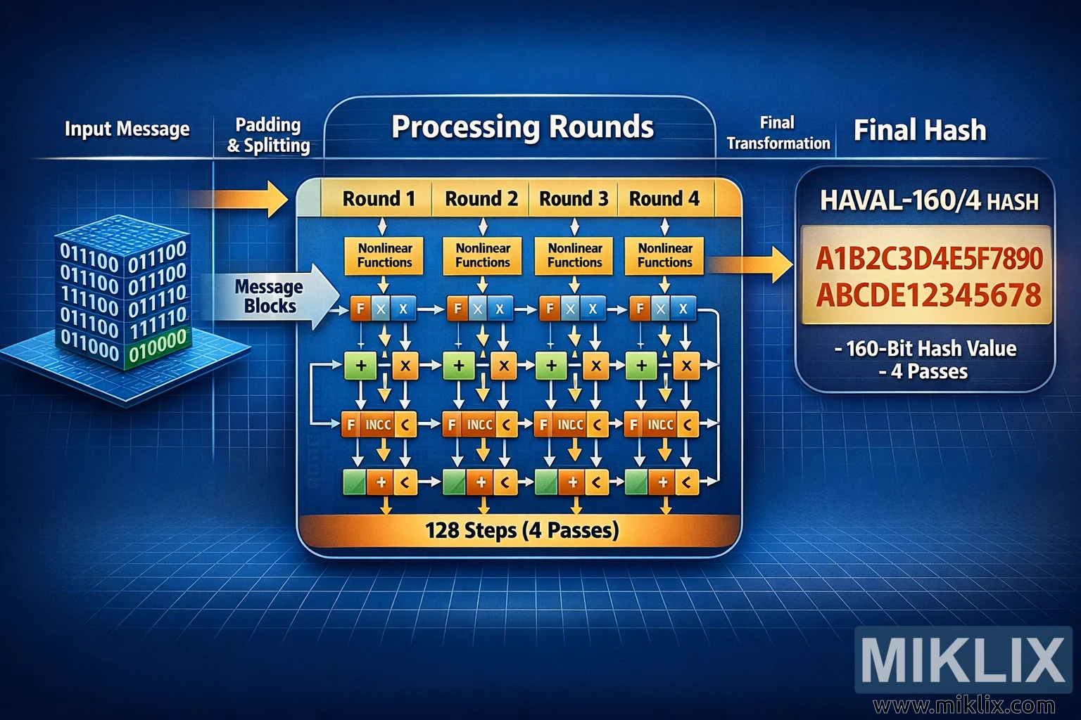 Image: HAVAL-160/4 Infographic: 4 Passes, 128 Steps