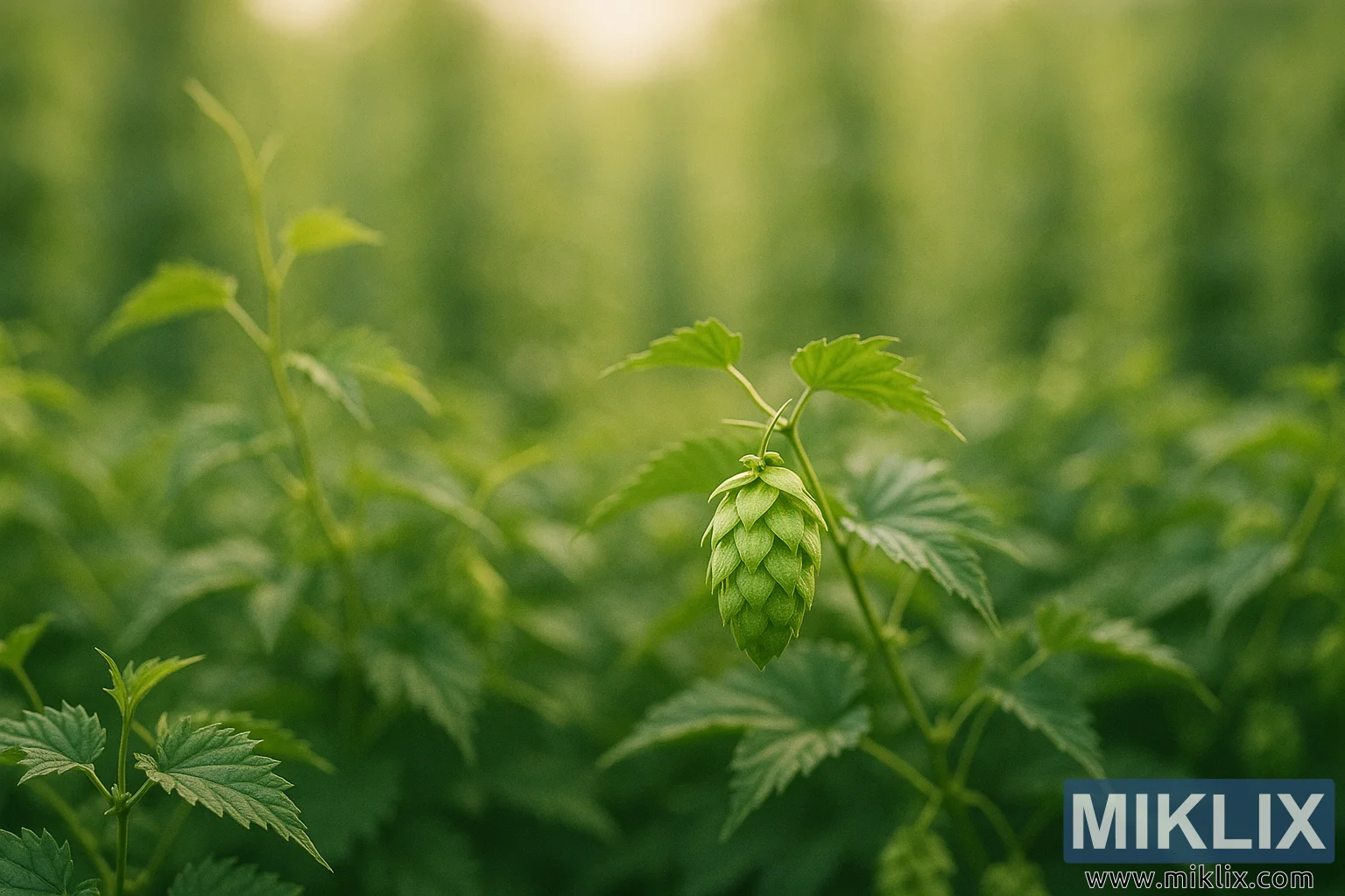 Tranquil Hop Field with Sunlit Green Cone