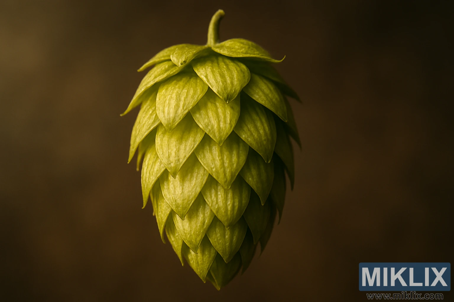 Samlet set formidler kompositionen både videnskabelig præcision og kunstnerisk varme. Hvert element – fra det pletfri fokus på humlekoglens lagdelte struktur til den omhyggeligt kontrollerede belysning og farveharmoni – arbejder sammen for at fremhæve humlen som et objekt af skønhed og betydning. Fotografiet indfanger ikke kun humlekoglens fysiske udseende, men hylder også dens rolle som en vital ingrediens i ølbrygning og legemliggør det håndværk og den naturlige kompleksitet, som Equinox-humlen repræsenterer.