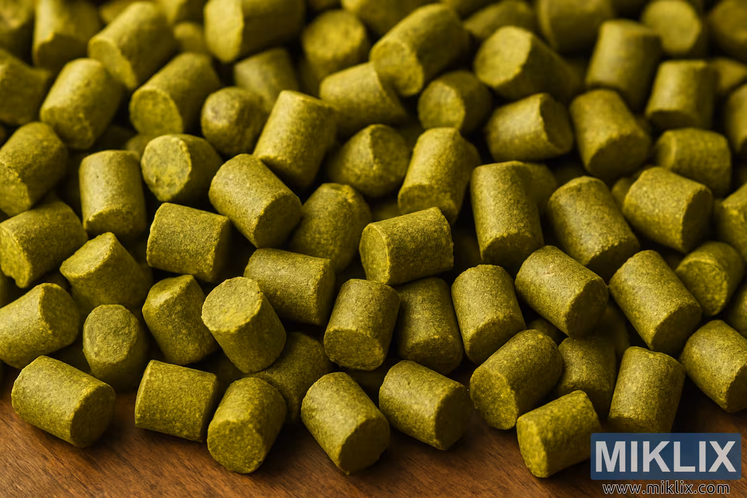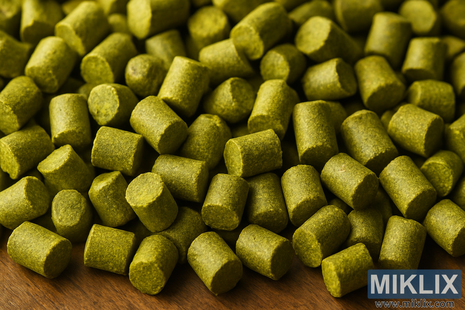 Billedet er mere end et statisk stilleben, men formidler en sanselig atmosfære. Man kan næsten forestille sig den jordagtige, harpiksagtige aroma, der stiger op fra bunken, rig på citrus-, fyrre- og urtenoter, der er karakteristiske for Tahoma-humle. Den tætte, komprimerede form antyder styrke og effektivitet: hver pille er et koncentreret udbrud af smag og aroma, der venter på at blive låst op i en kogende brygkedel.