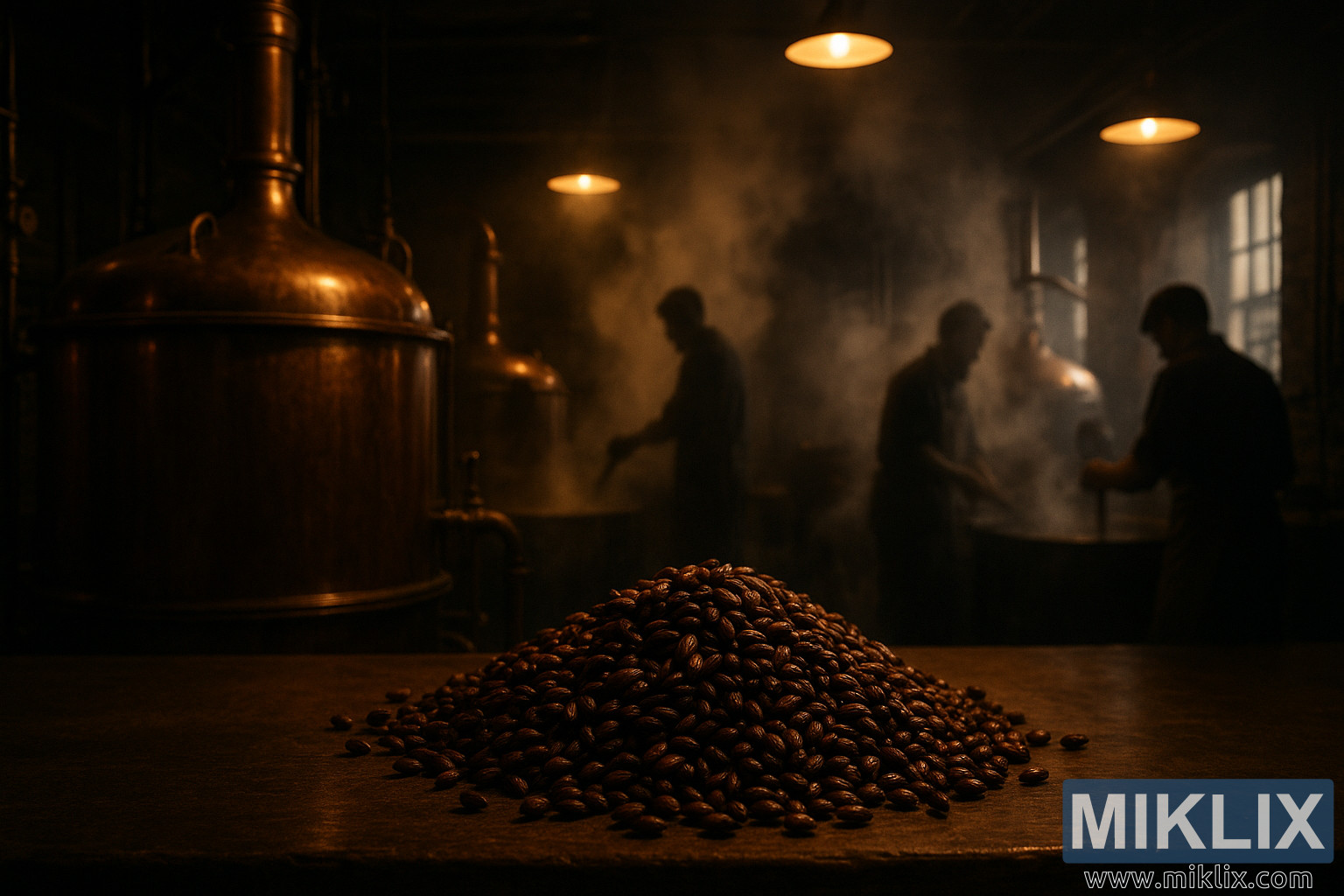 Billedets overordnede stemning er præget af stille ærbødighed og kreativ energi. Det er et rum, hvor tradition og innovation sameksisterer, hvor fortiden præger nutiden, og hvor enhver beslutning – fra kornudvælgelse til temperaturkontrol – træffes med vilje. Den ristede byg, dampen, kobberet og figurerne i bevægelse bidrager alle til en fortælling om transformation. Dette er ikke bare et bryghus – det er en smagssmelte, et sted, hvor ingredienserne formes, og hvor det endelige produkt bærer præg af sine omgivelser og skabere.