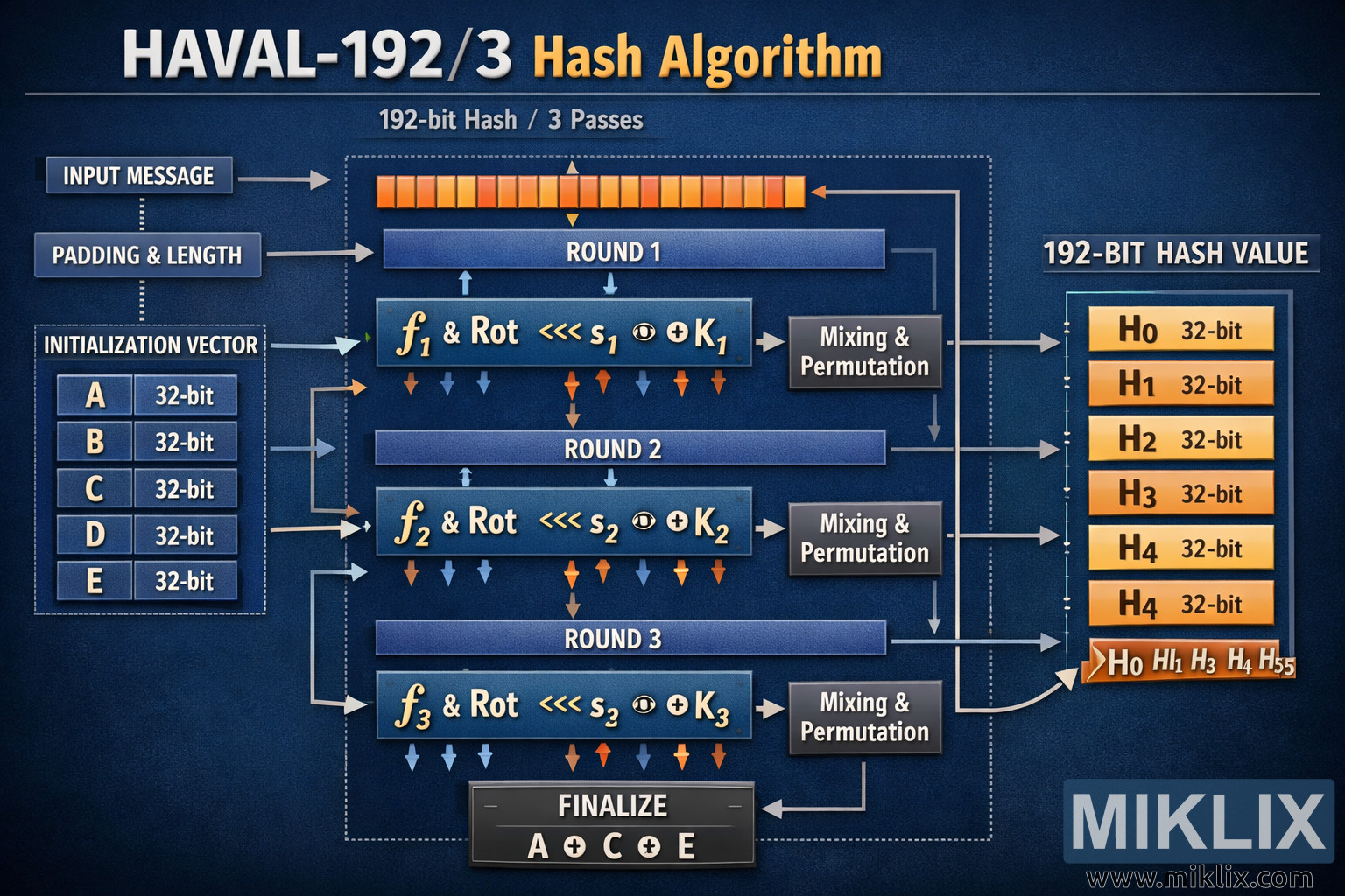 Mellem blendningsrunderne tilføjer HAVAL sin hemmelige sauce - specielle opskrifter, der piver tingene endnu mere op. Dette trin sikrer, at selv en lille ændring i dine data (som at ændre et enkelt bogstav i en adgangskode) gør den færdige smoothie helt anderledes.