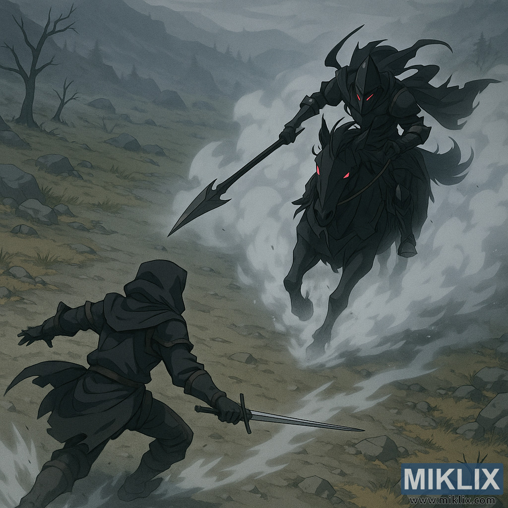Samlet set forvandler det høje, vinklede perspektiv dette møde til et taktisk øjebliksbillede, som om seeren var vidne til et nøglebillede fra en animeret sekvens. De anløbne's desperate sideskridt, Nattens Kavaleris ustoppelige momentum og den hvirvlende tåge, der binder dem alle sammen, skaber en følelse af hastende behov og forestående konsekvenser. Det er det fastfrosne øjeblik mellem overlevelse og udslettelse – fanget ovenfra, hvor farens geometri blotlægges på det stenede lærred i De Forbudte Lande.