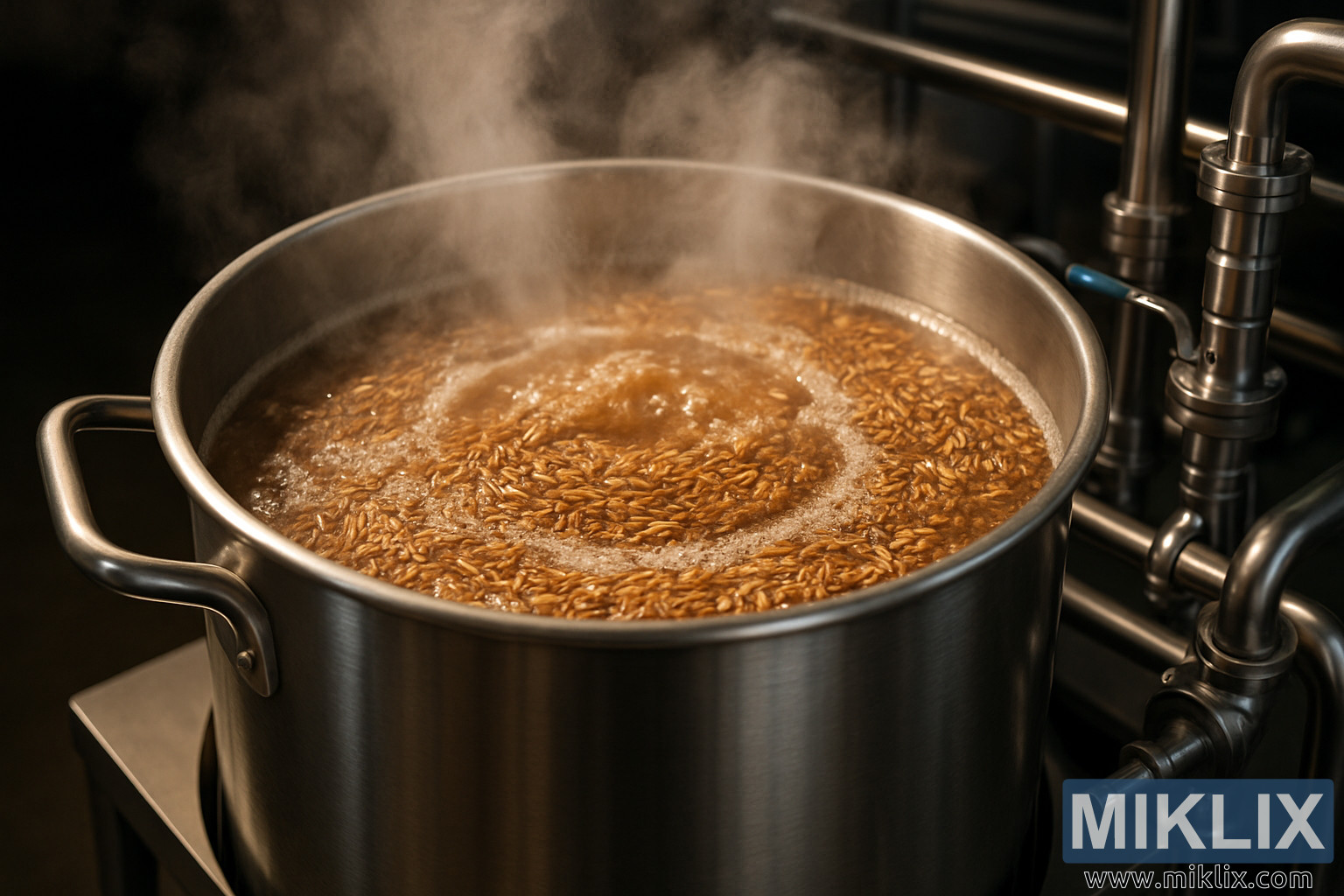 Für die Verarbeitung von Vollkornroggen ist ein Getreidekocher erforderlich. Dieses Gerät ist für die Verkleisterung der Stärke unerlässlich. Es macht sie für die enzymatische Umwandlung während des Maischens leichter zugänglich. Eine optimale Extraktion ist entscheidend, um Stärketrübung oder nicht umgewandelte Stärke im Bier zu vermeiden.