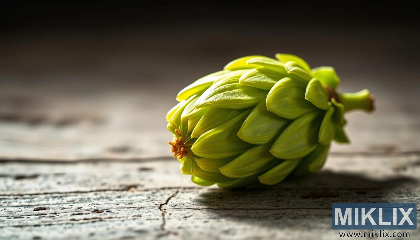 Durch die Linse der Kunst betrachtet, wird der Hopfen zum Gegenstand der Kontemplation, seine Geometrie wirkt fast architektonisch. Jedes überlappende Deckblatt bildet ein grünes Mosaik, das an natürliche Gestaltungsprinzipien von Tannenzapfen, Artischocken und anderen botanischen Strukturen erinnert. Die Symmetrie ist nicht perfekt, sondern organisch und erinnert uns an die Variabilität, die jeden Hopfenzapfen einzigartig macht. Aus wissenschaftlicher Sicht bietet diese Nahaufnahme die Möglichkeit, die evolutionäre Effizienz der Struktur zu bestaunen: Deckblätter schützen das empfindliche Lupulin vor Sonne, Luft und Schäden, bis der Moment des Brauens sein Potenzial freisetzt. Das Bild befindet sich somit an der Schnittstelle von Kunst und Wissenschaft und lädt sowohl zu ästhetischer Bewunderung als auch zu technischem Verständnis ein.