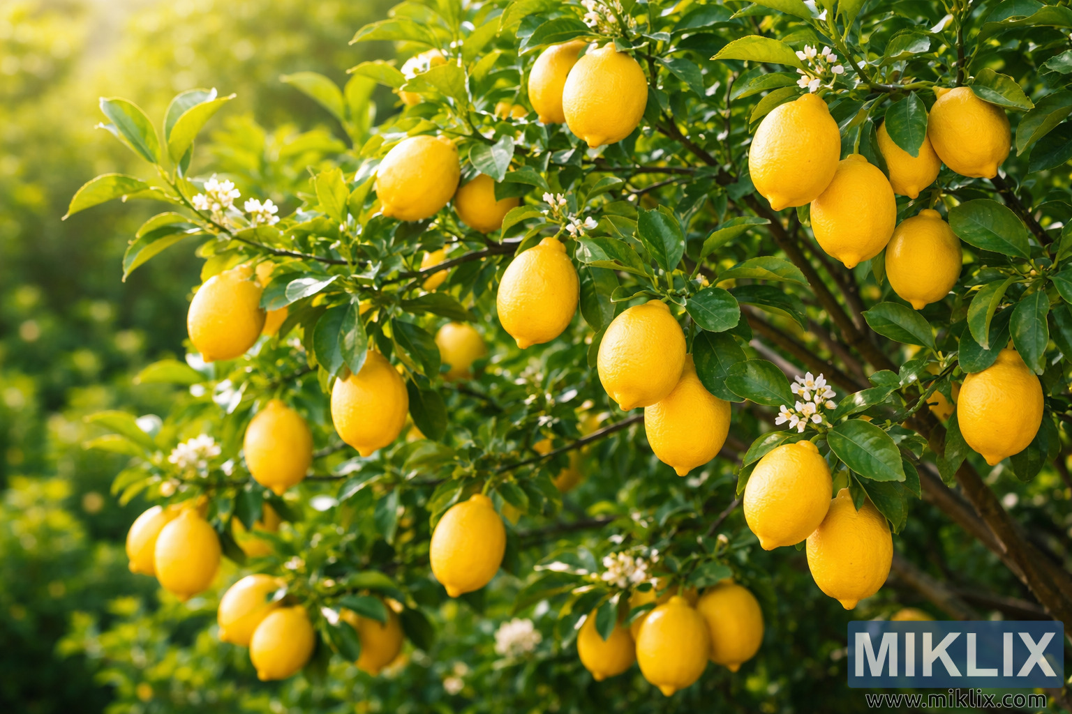 Sunlit Meyer Lemon Tree with Ripe Fruit