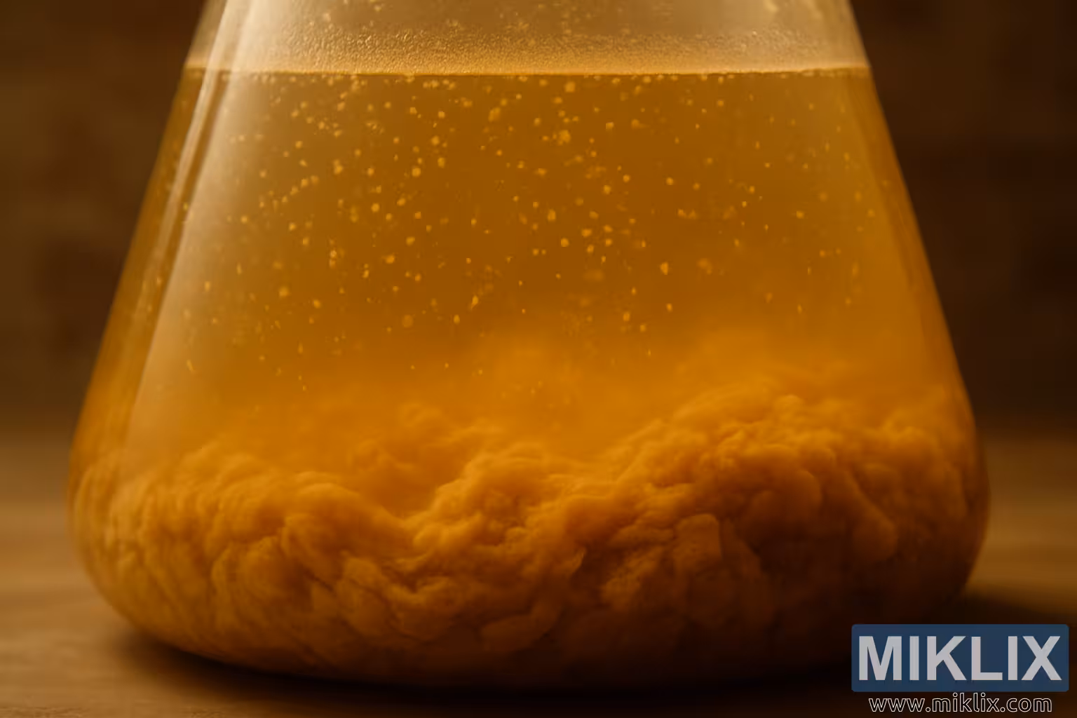 En conjunto, la imagen transmite una sensación de equilibrio: entre ciencia y arte, entre actividad y quietud, entre suspensión y sedimentación. Captura un instante fugaz en la historia continua de la fermentación, una etapa tan esencial como olvidada. Para el cervecero, esta sedimentación marca el progreso hacia la claridad y el refinamiento. Para el observador, revela la coreografía oculta de la vida microscópica, visible a través del vidrio, la luz y la paciencia.