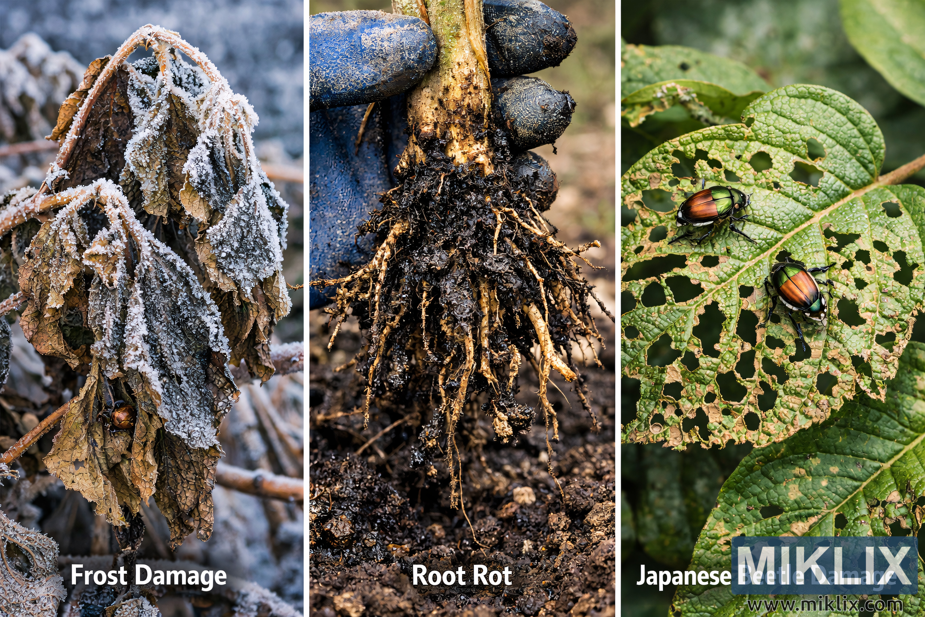 Imagen: Problemas comunes de la planta de kiwi: heladas, pudrición de la raíz y daños causados por escarabajos