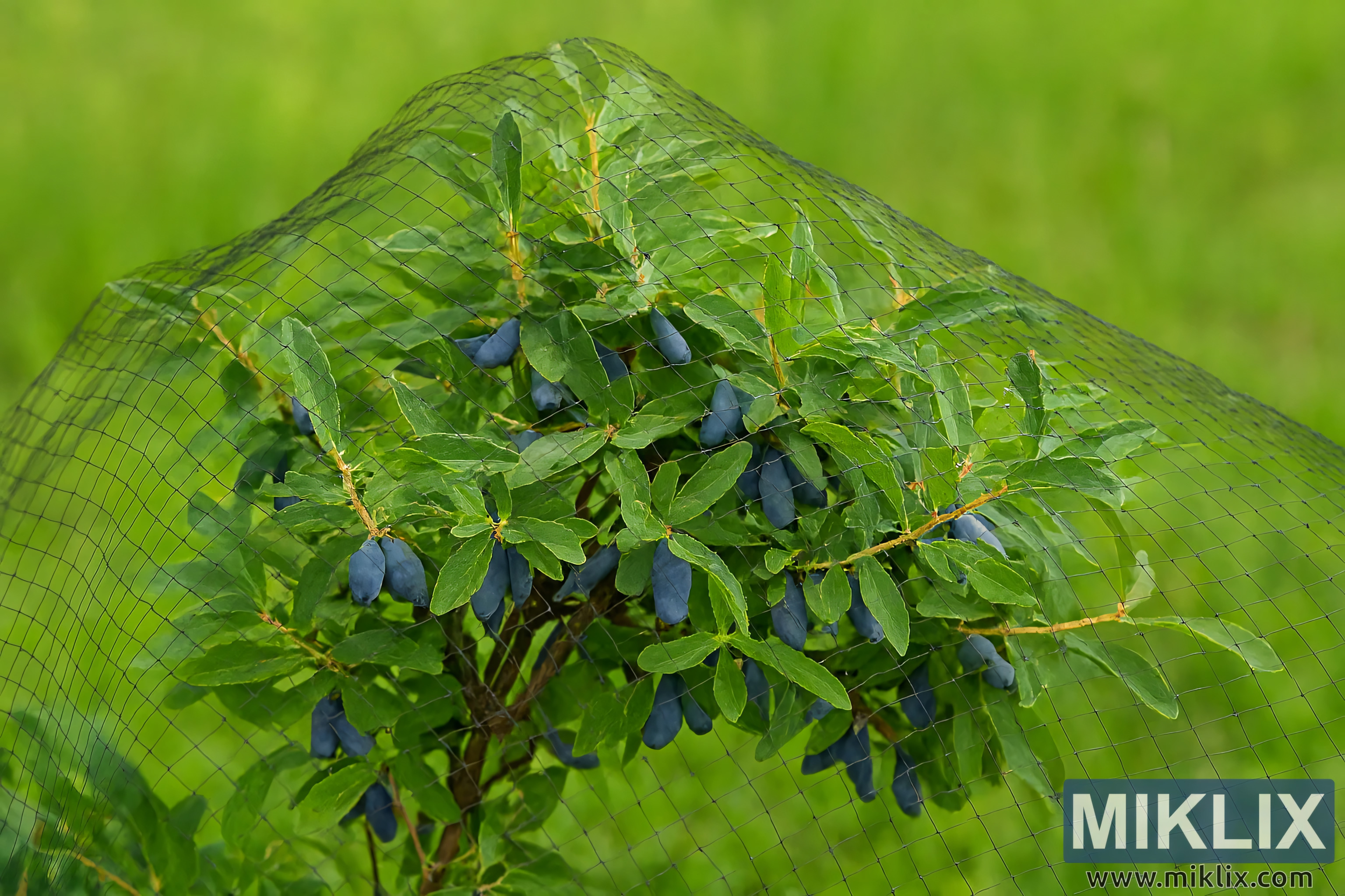 Kuva: Hunajamarjapensas suojaavalla lintuverkolla