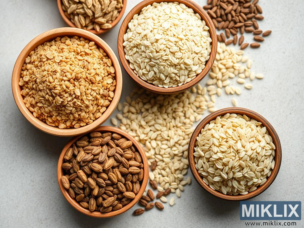 Assorted grains and seeds in bowls