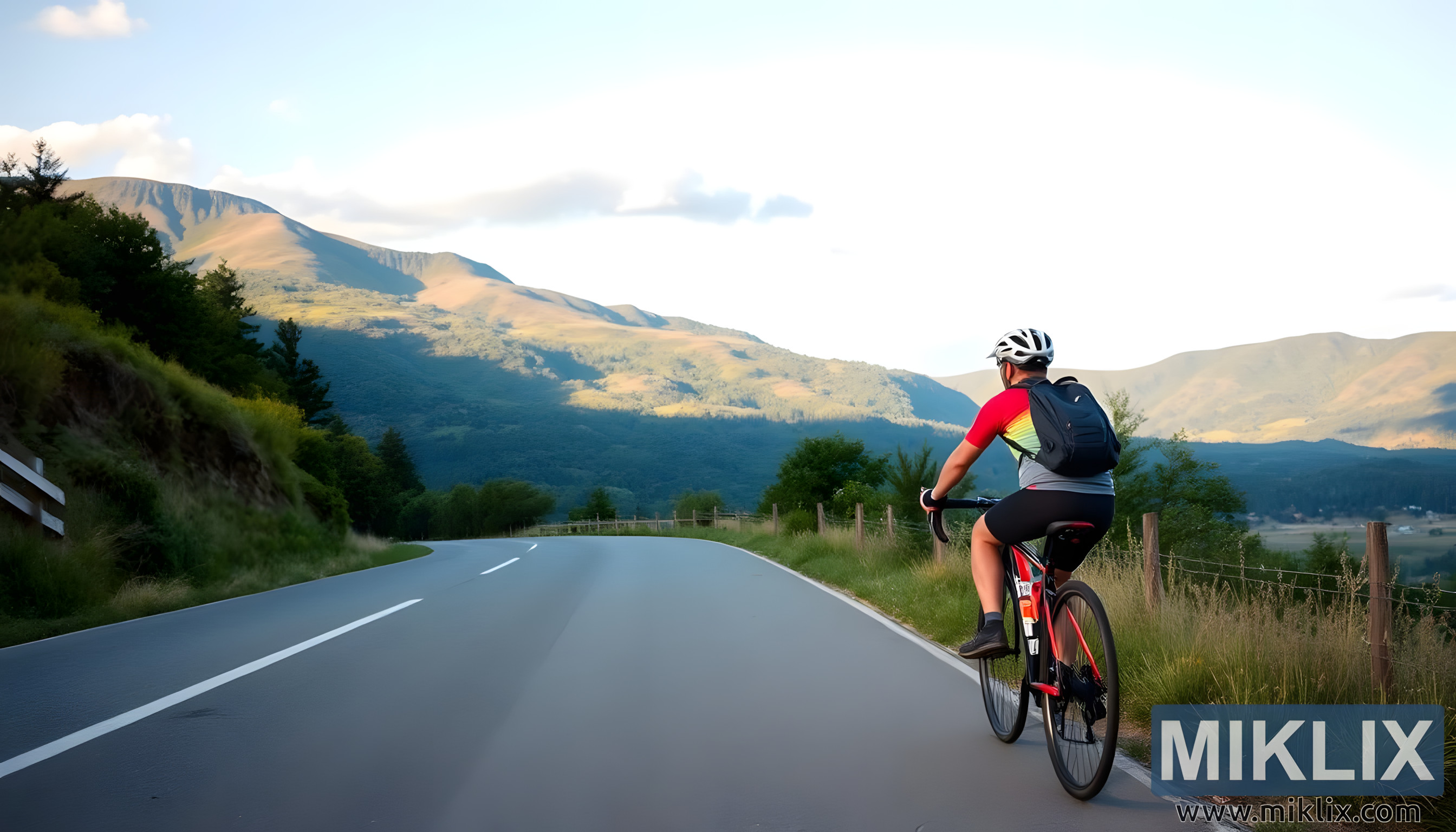 Ang larawang ito ay nakakakuha ng higit pa sa isang magandang biyahe—napapaloob nito ang diwa ng paggalugad, ang kagalakan ng paggalaw, at ang pagpapanumbalik ng kapangyarihan ng kalikasan. Iniimbitahan nito ang manonood na isipin ang kanilang sarili sa kalsadang iyon, naramdaman ang araw sa kanilang mukha, ang hangin sa kanilang likuran, at ang tahimik na kilig sa pagtuklas kung ano ang nasa paligid ng liko. Ginamit man upang magbigay ng inspirasyon sa paglalakbay, mag-promote ng wellness, o ipagdiwang ang kagandahan ng pagbibisikleta, ang eksena ay sumasalamin sa pagiging tunay, kalayaan, at walang hanggang pang-akit ng bukas na kalsada.