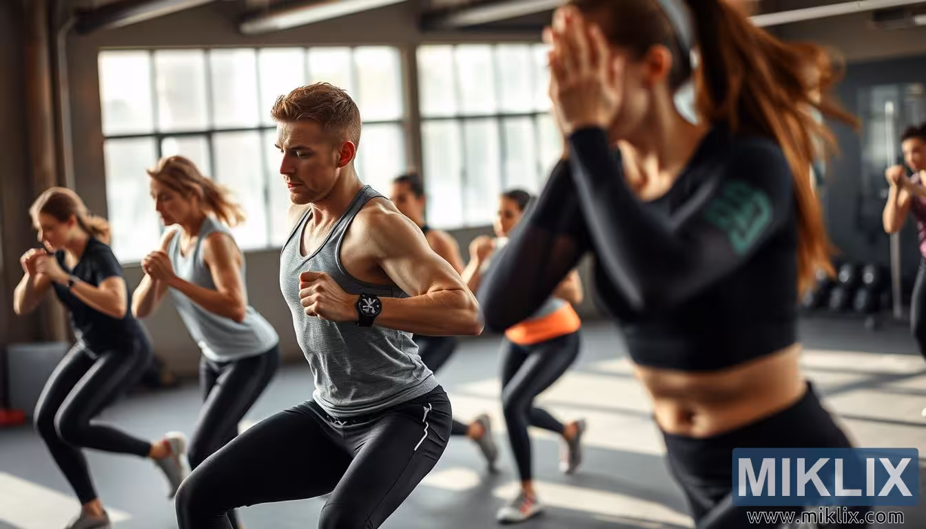 High-intensity group workout in gym