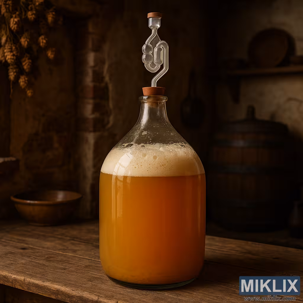 Larawan: Belgian Witbier Fermenting sa Rustic Carboy