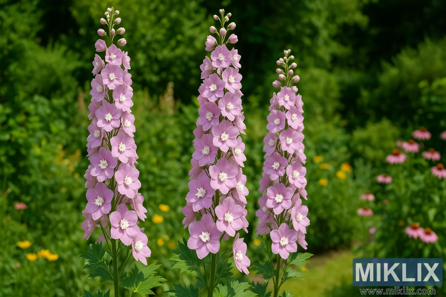 Delphinium 'Guinevere' in Full Bloom with Lavender-Pink Flowers