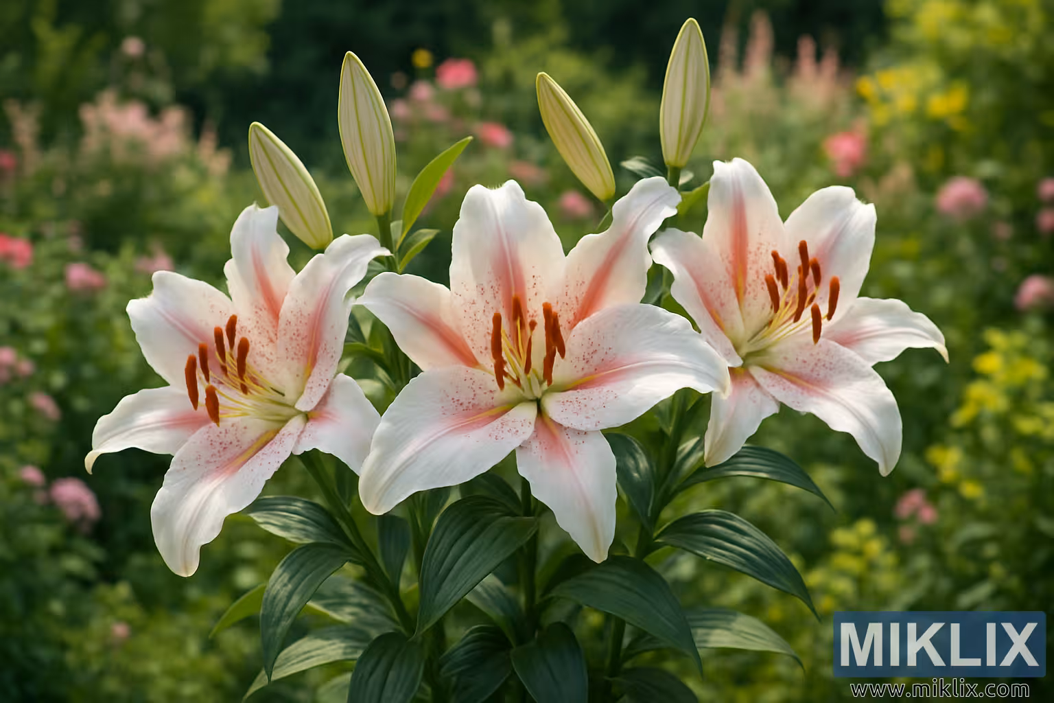 Elegant Oriental lilies in full bloom