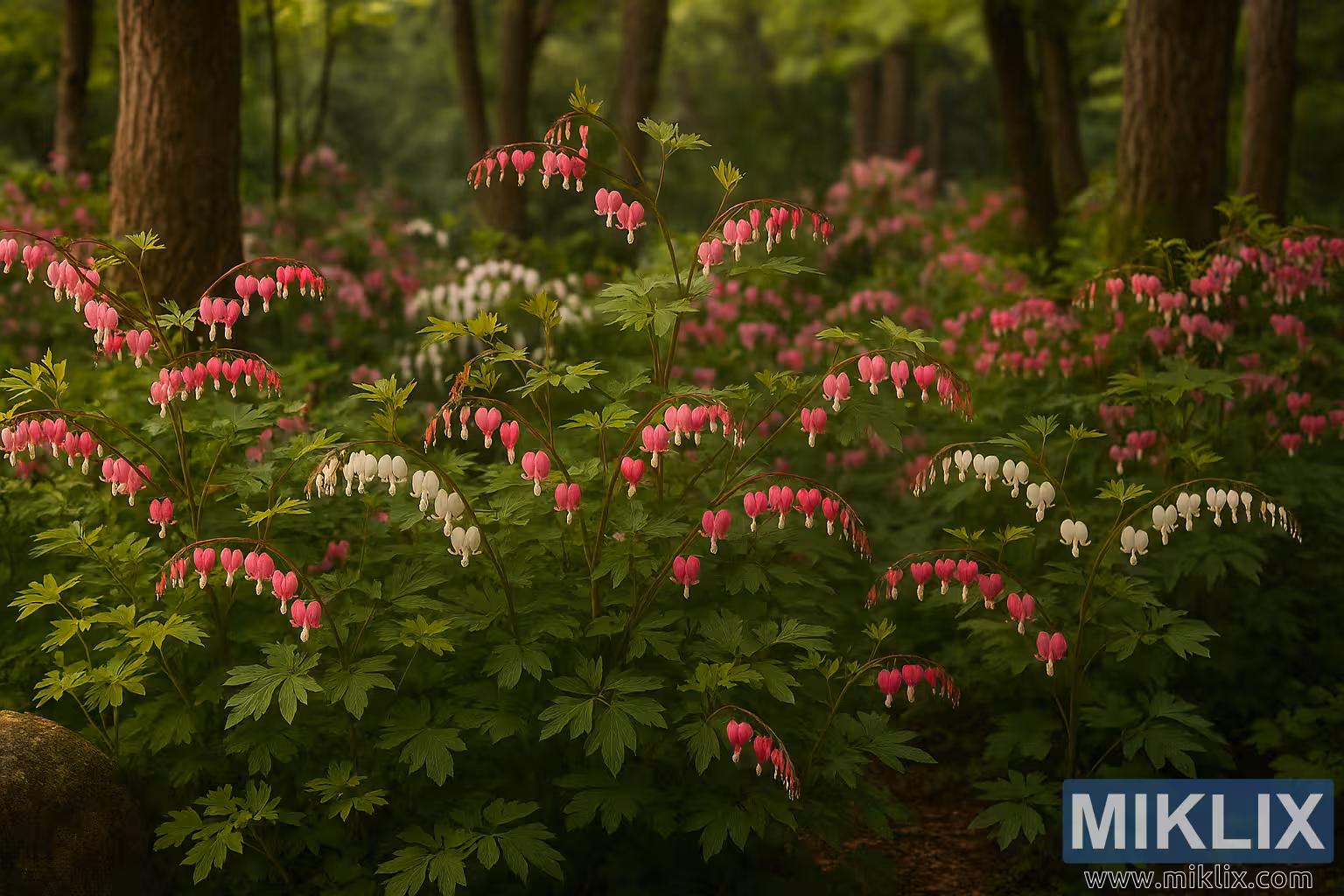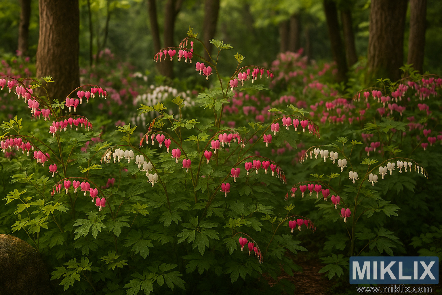 Romantic Woodland Garden with Bleeding Hearts