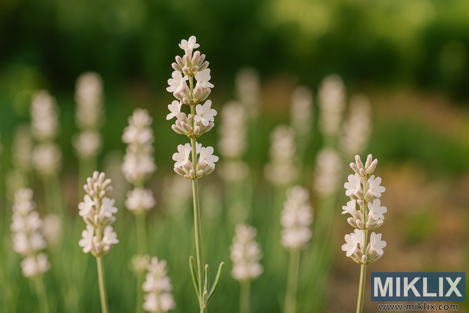 La lumière joue un rôle crucial dans la formation de l’ambiance et de l’impact visuel de l’image. La lumière chaude et à angle bas de la fin d’après-midi met en valeur les subtiles teintes rosées des fleurs et projette de douces ombres qui soulignent leur forme tridimensionnelle. Le résultat est une scène qui semble vivante et immersive, invitant presque le spectateur à entrer dans le jardin et à ressentir le parfum doux, le bourdonnement des abeilles et la présence apaisante de cette élégante variété lavande.