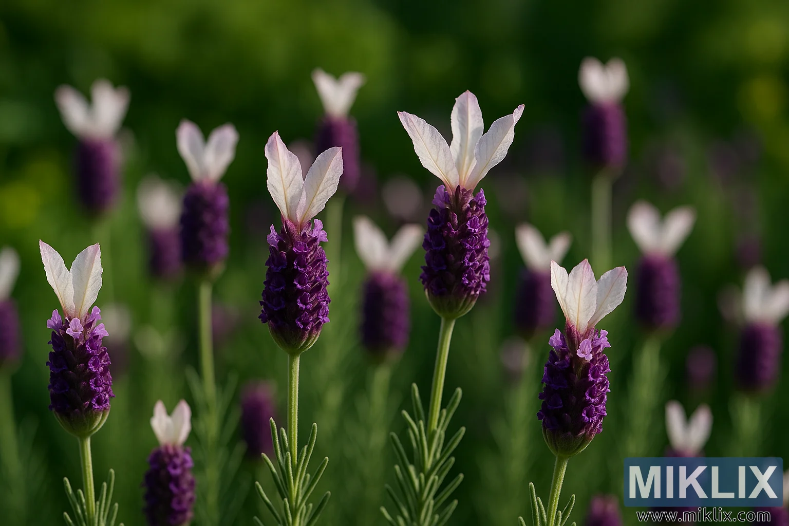 « Ballerina » est un cultivar particulièrement apprécié de lavande espagnole, apprécié pour sa beauté ornementale et sa palette de couleurs unique. Ses épis floraux saisissants et ses bractées délicates en font un choix privilégié pour les bordures, les contenants et les plantations favorables aux pollinisateurs. Cette photographie capture toutes ces qualités — l’élégance, la délicatesse et l’impact visuel pur de « Ballerina » — présentant un portrait vivant de l’art botanique et de la sophistication des jardins.