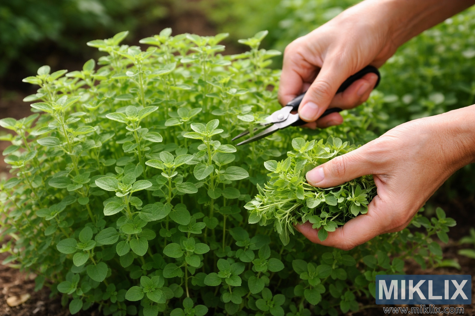 Harvesting Fresh Marjoram in the Garden