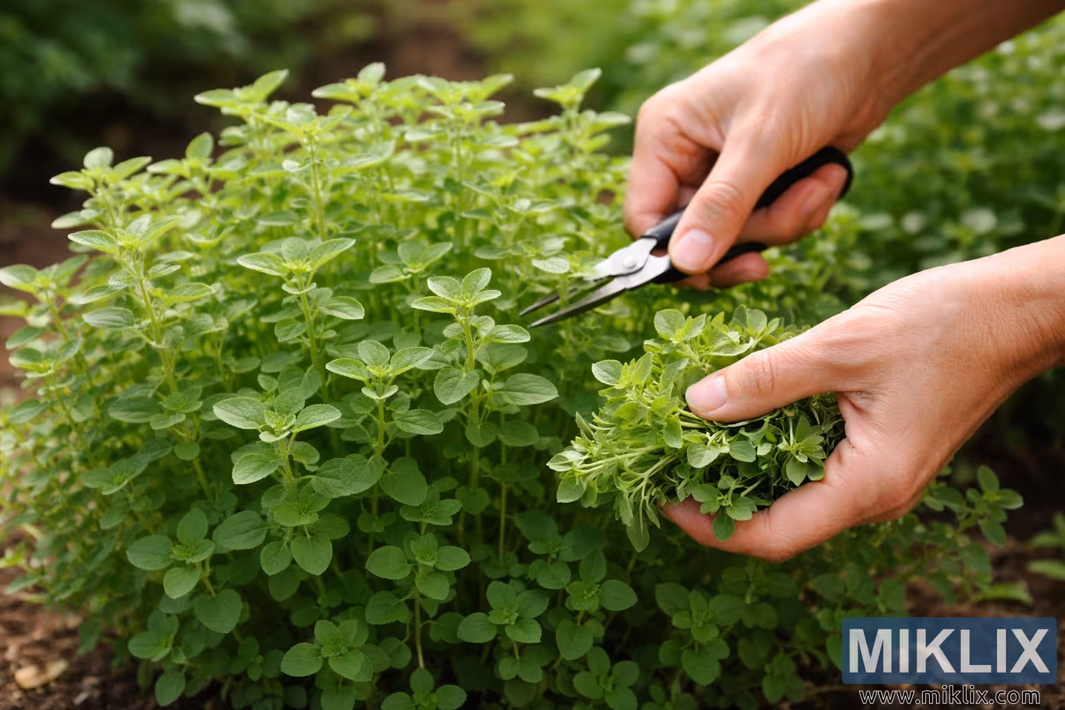 Image: Récolte de la marjolaine fraîche dans le jardin