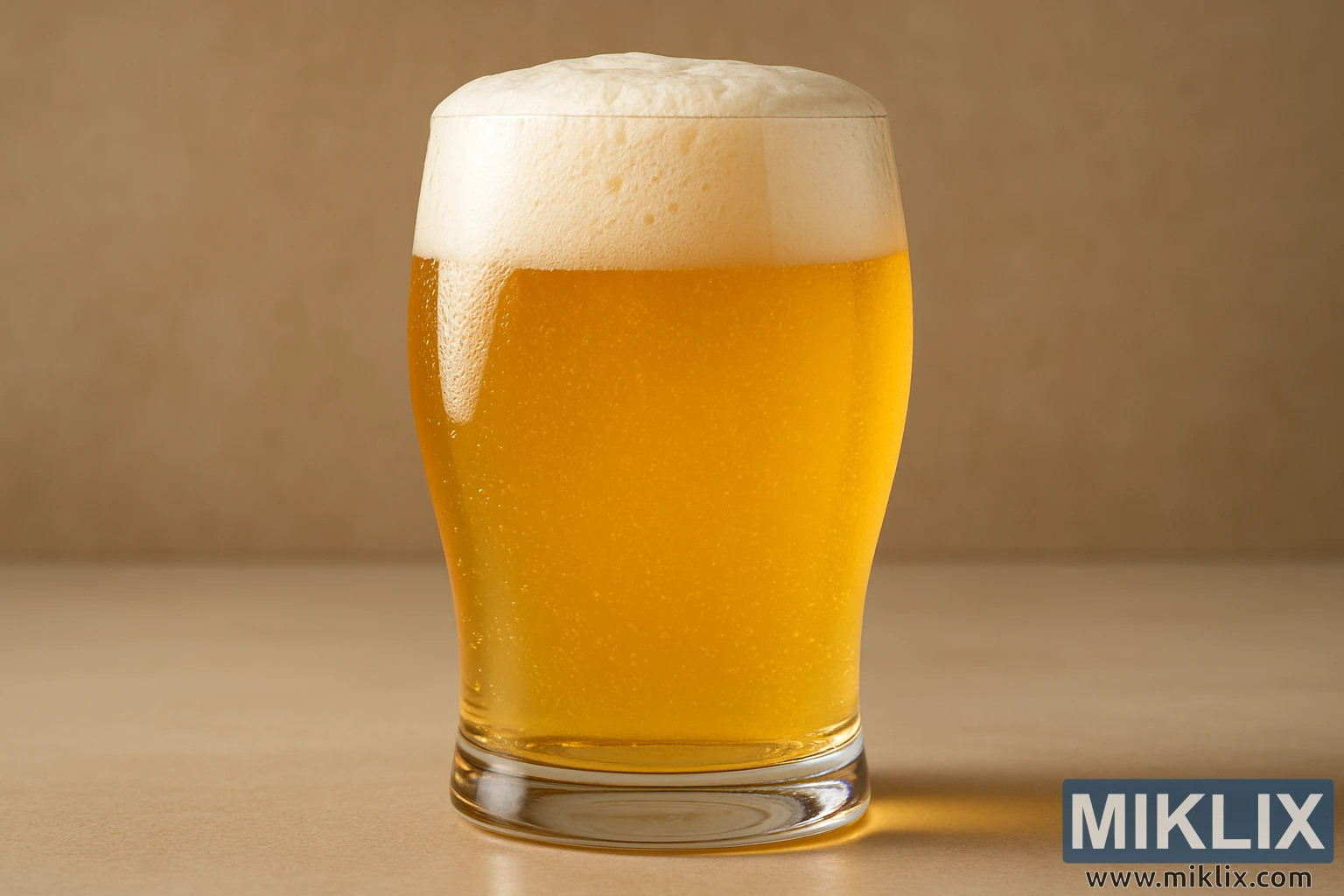 Close-Up of a Pale Golden Ale with Creamy Foam