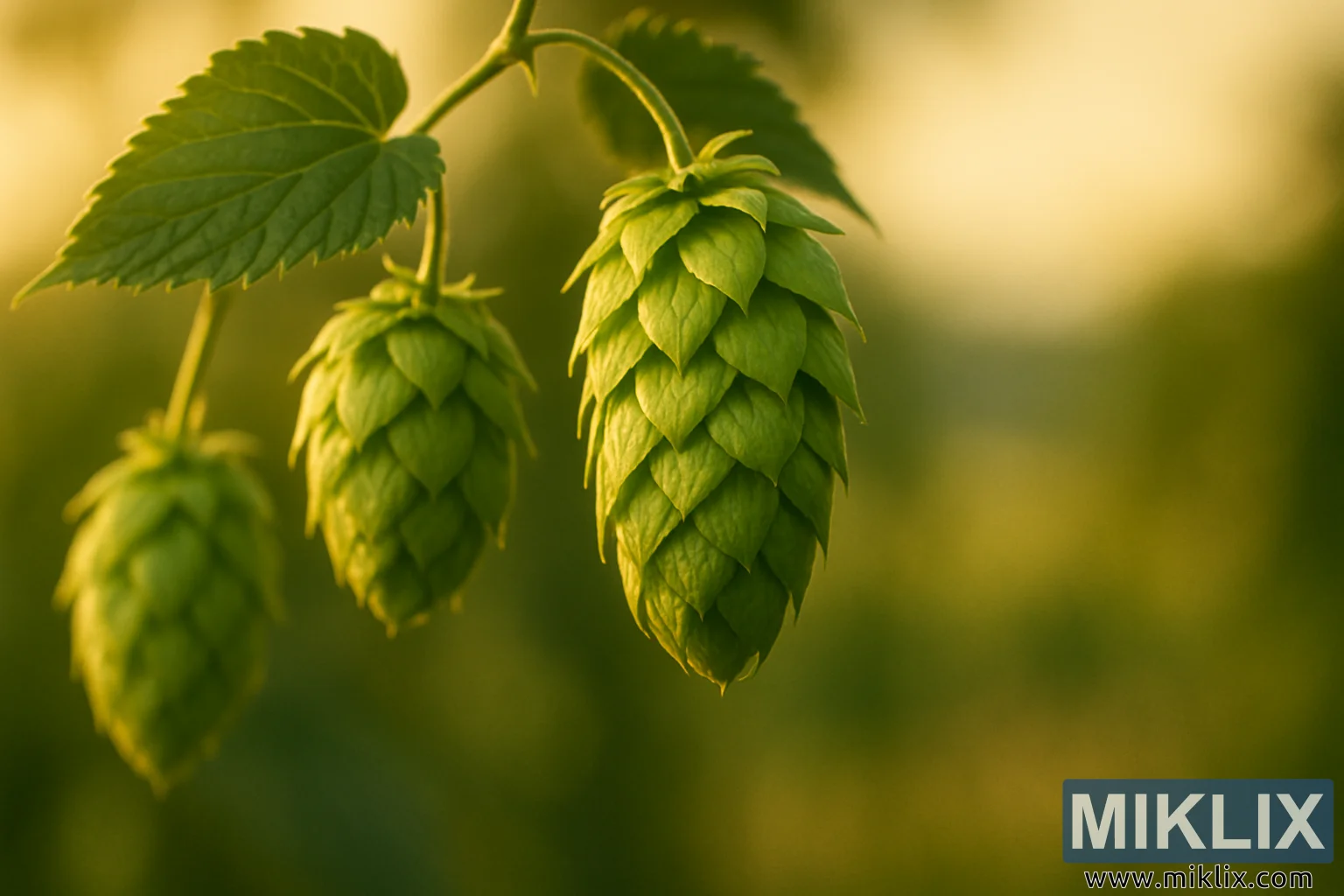 Close-Up of Zeus Hop Cones in Warm Golden Light