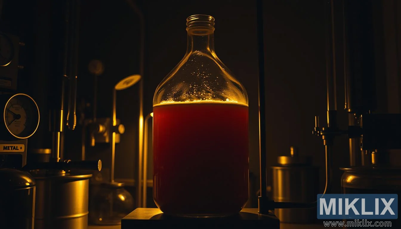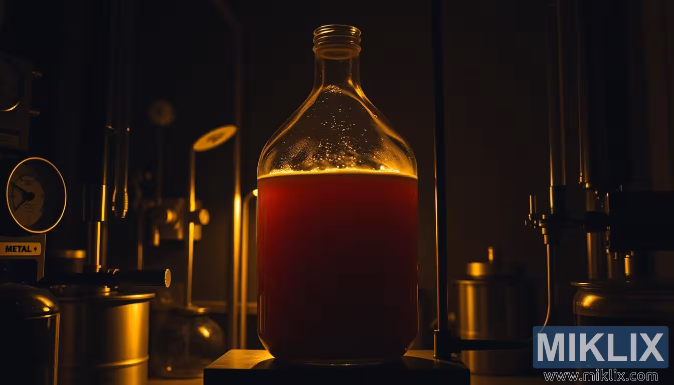 Dans un laboratoire à l'éclairage tamisé, une bonbonne de liquide ambré fermente tranquillement au milieu de jauges et d'instruments, incarnant le délicat équilibre entre science, patience et savoir-faire dans le brassage.