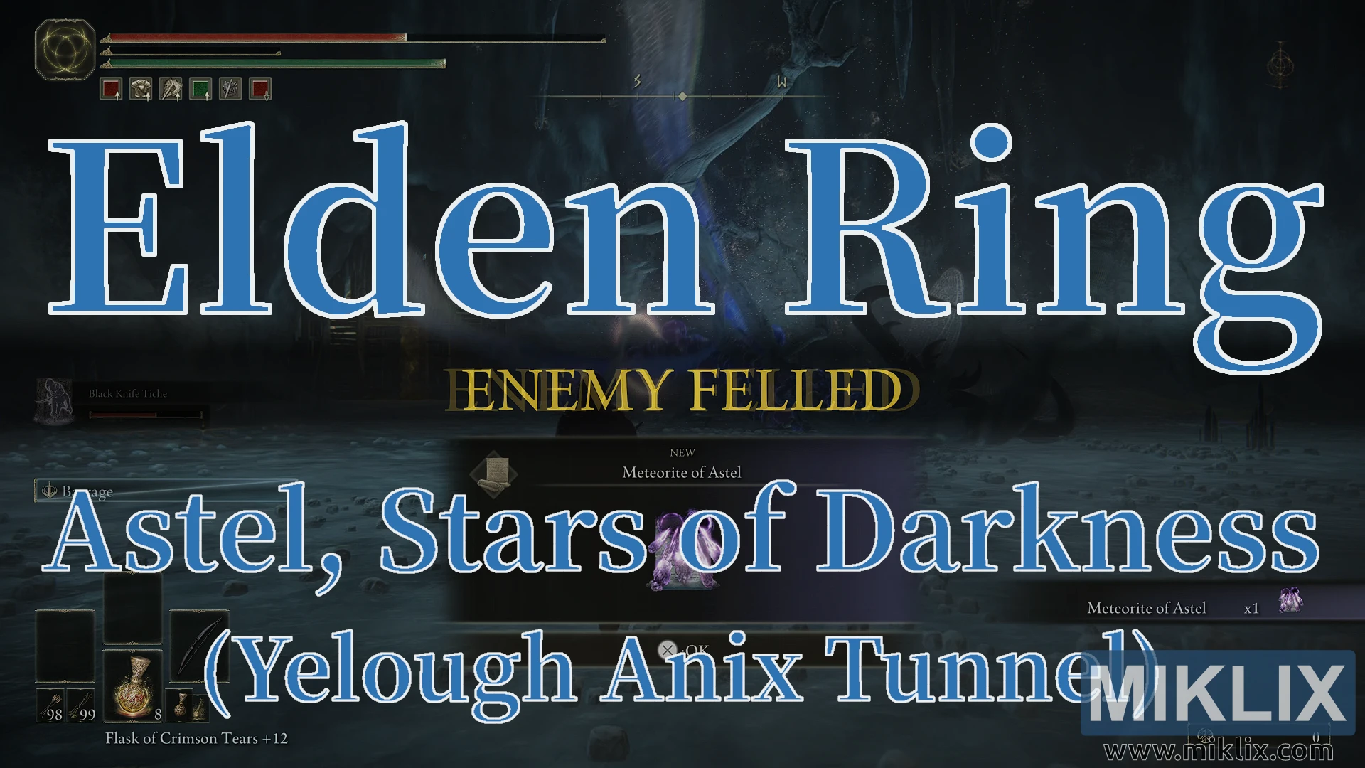Astel, Stars of Darkness is in the lowest tier, Field Bosses, and is the end boss of the Yelough Anix Tunnel dungeon in the Southern part of the Consecrated Snowfield. Like most lesser bosses in the game, defeating this one is optional in the sense that it is not required in order to progress the main story.