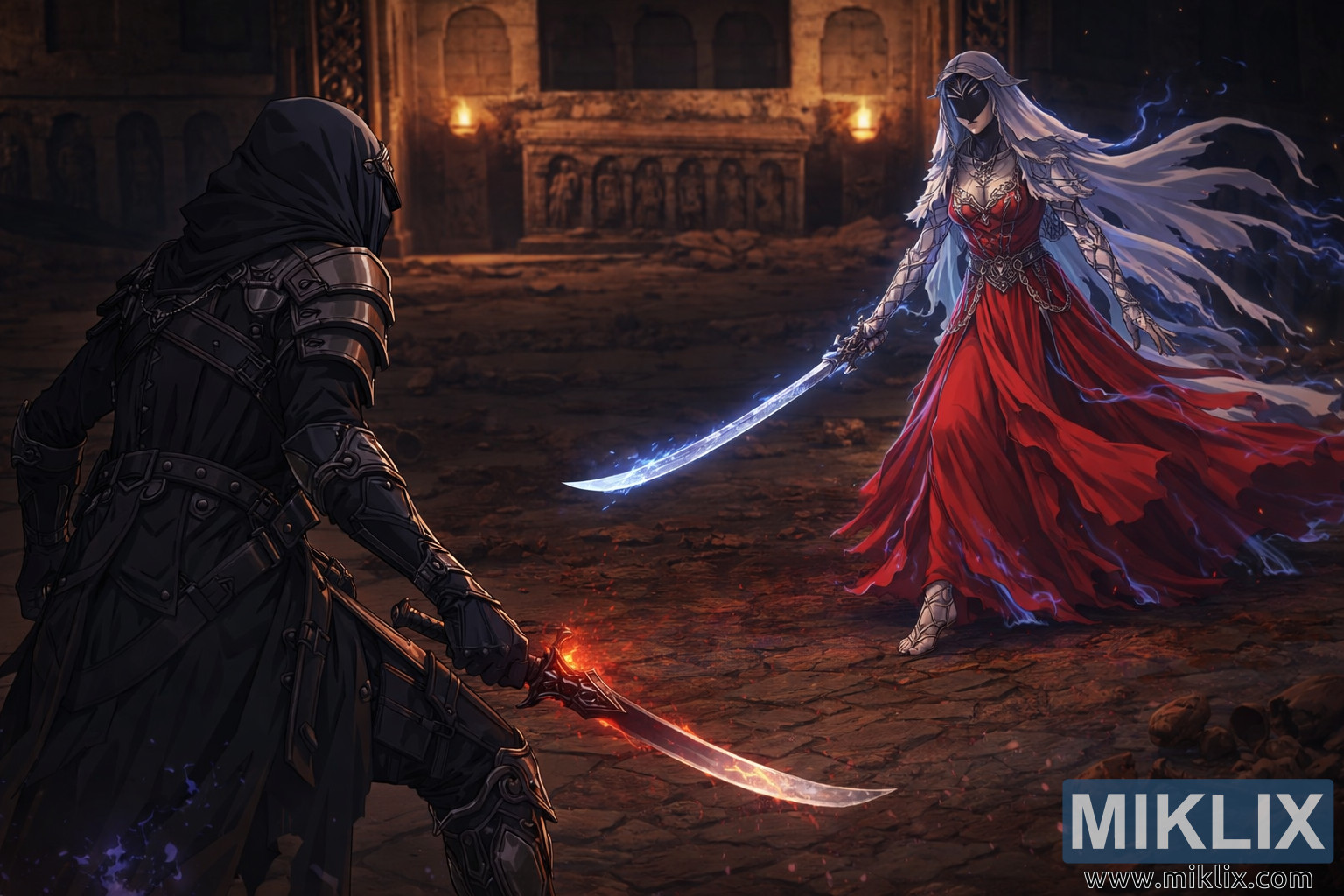 Image: Tarnished vs. the Dancer of Ranah — Crimson Beneath the Frost
