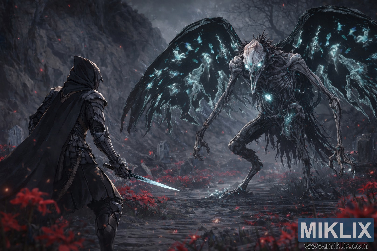 The image is related to: Elden Ring: Death Rite Bird (Charo's Hidden Grave) Boss Fight (SOTE)
